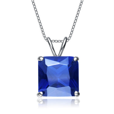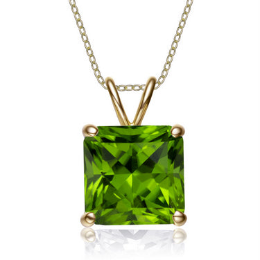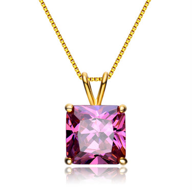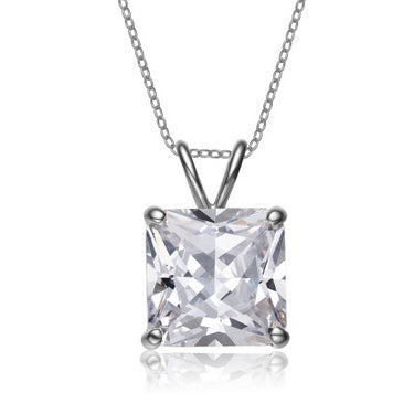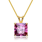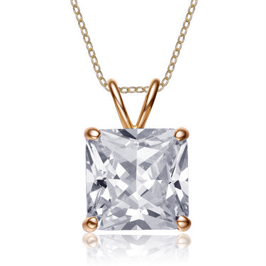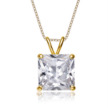 Sterling Silver Gold Overlay Clear Cubic Zirconia Square Solitaire Necklace