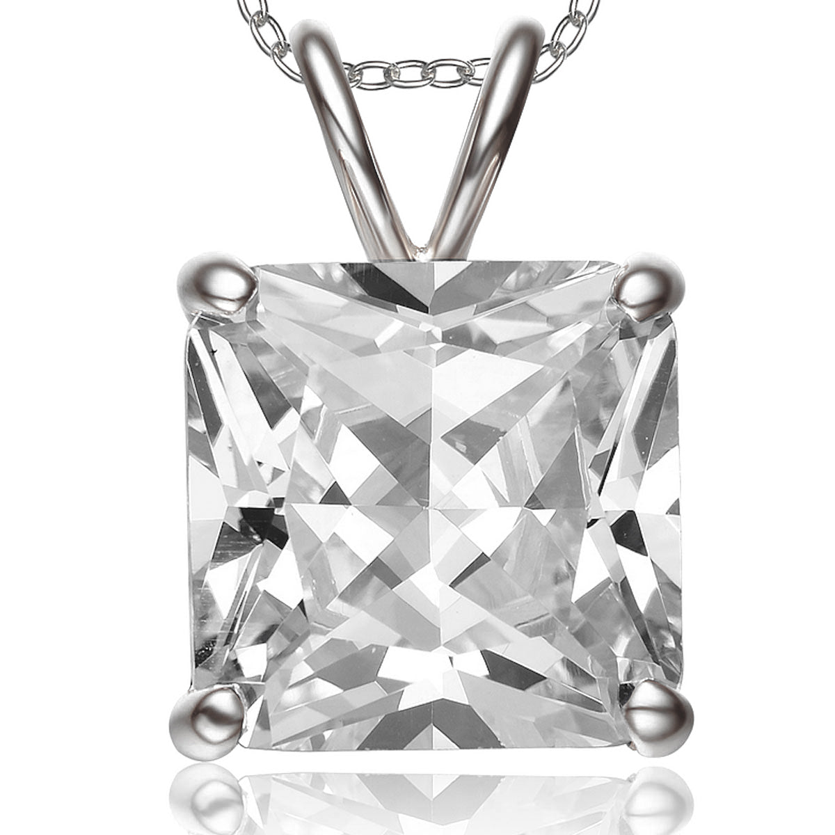 An astonishing princess cut clear cubic zirconia solitaire is the central focus of this sterling silver gold overlay necklace. This necklace is just the ticket for formal functions.