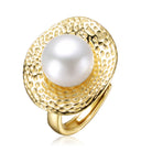 Sterling Silver Gold Plated with Genuine Freshwater Pearl Hammered Ring