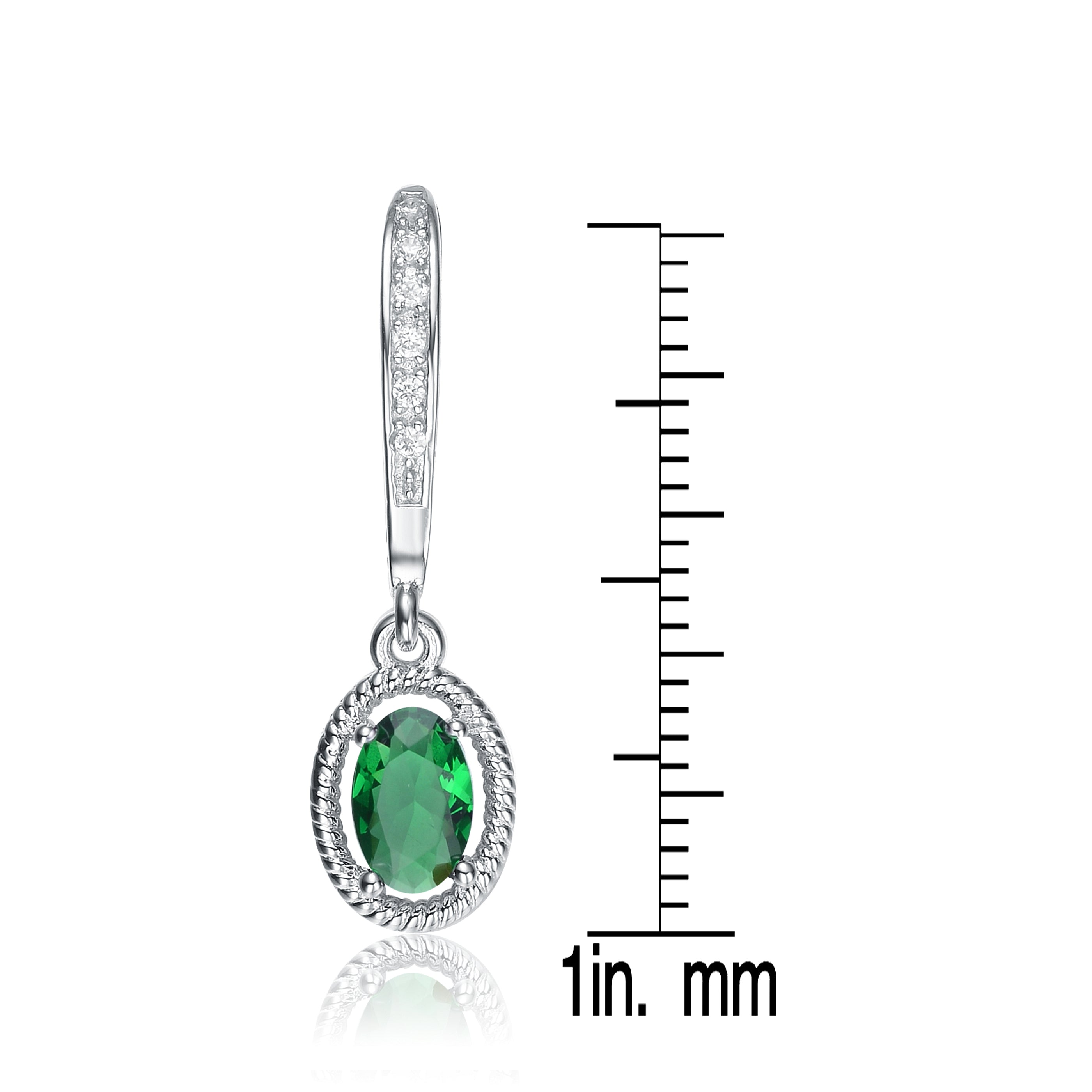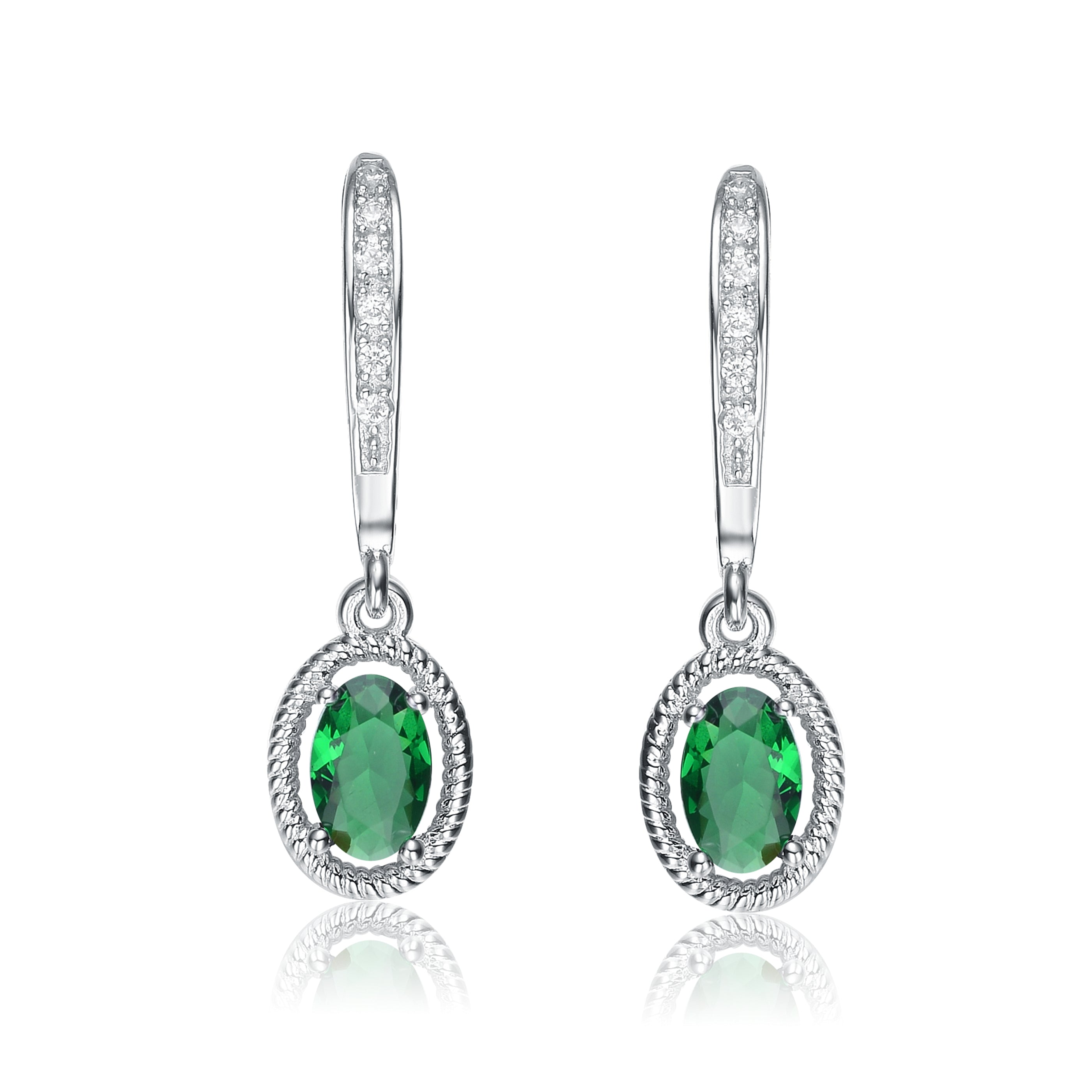 Sterling Silver Green Cubic Zirconia Oval Dangling Earrings