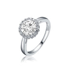 Sterling Silver White Gold Plated Halo Round Clear Cubic Zirconia Solitaire Ring