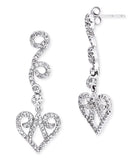 Classic design features unique hanging heart shaped paved with clear cubic zirconia gemstones. These dangle earrings are made from .925 sterling silver secured with friction post.