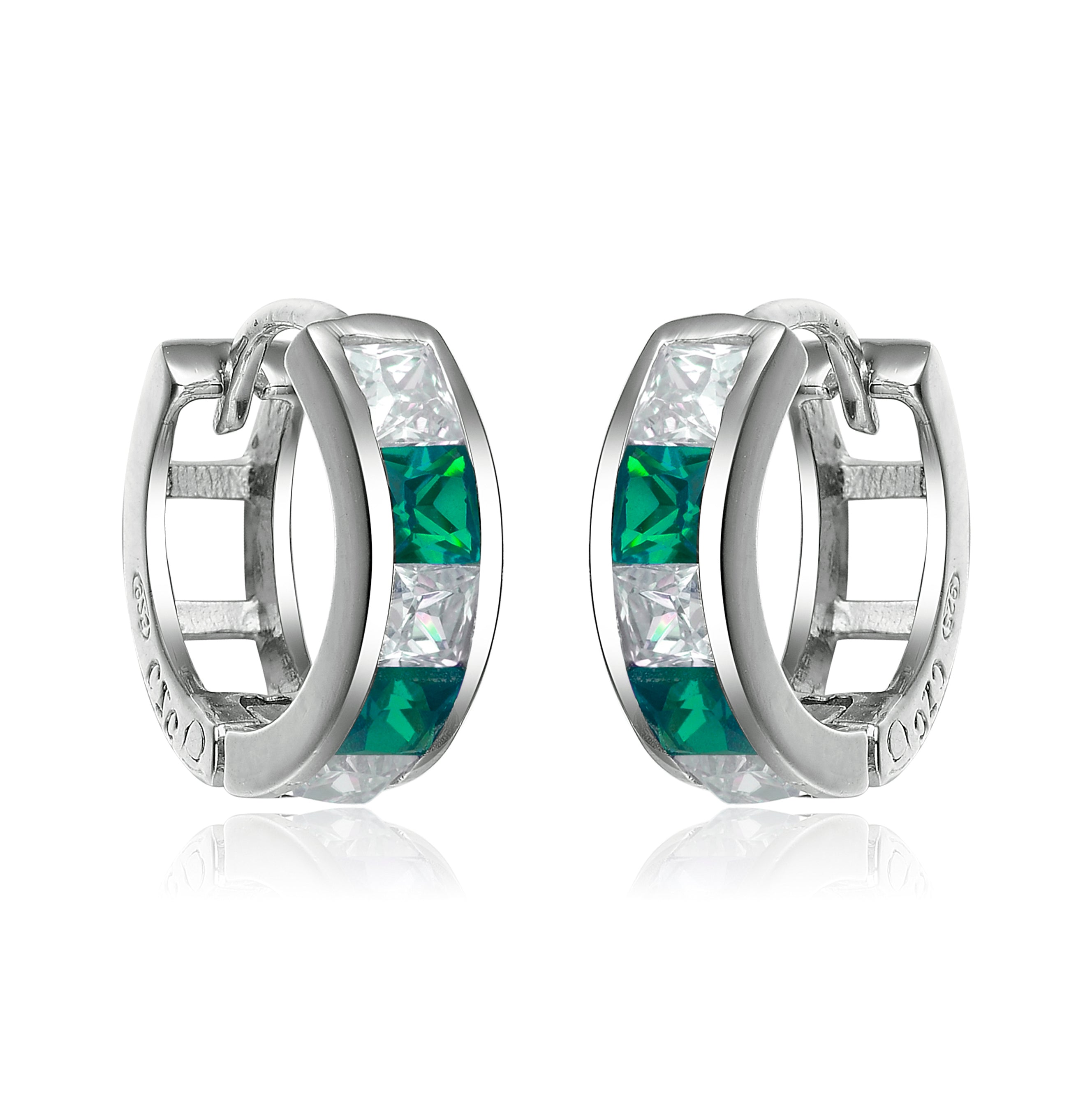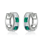 These exquisite huggie earrings are crafted from high-quality sterling silver and feature a sleek, modern design. Each earring is adorned with a channel setting of square-cut green cubic zirconia stones, adding a vibrant touch of color. The lustrous silver complements the rich green stones beautifully, making these earrings perfect for both casual and formal occasions. The secure hinged closure ensures comfort and ease of wear, making them a versatile addition to any jewelry collection.