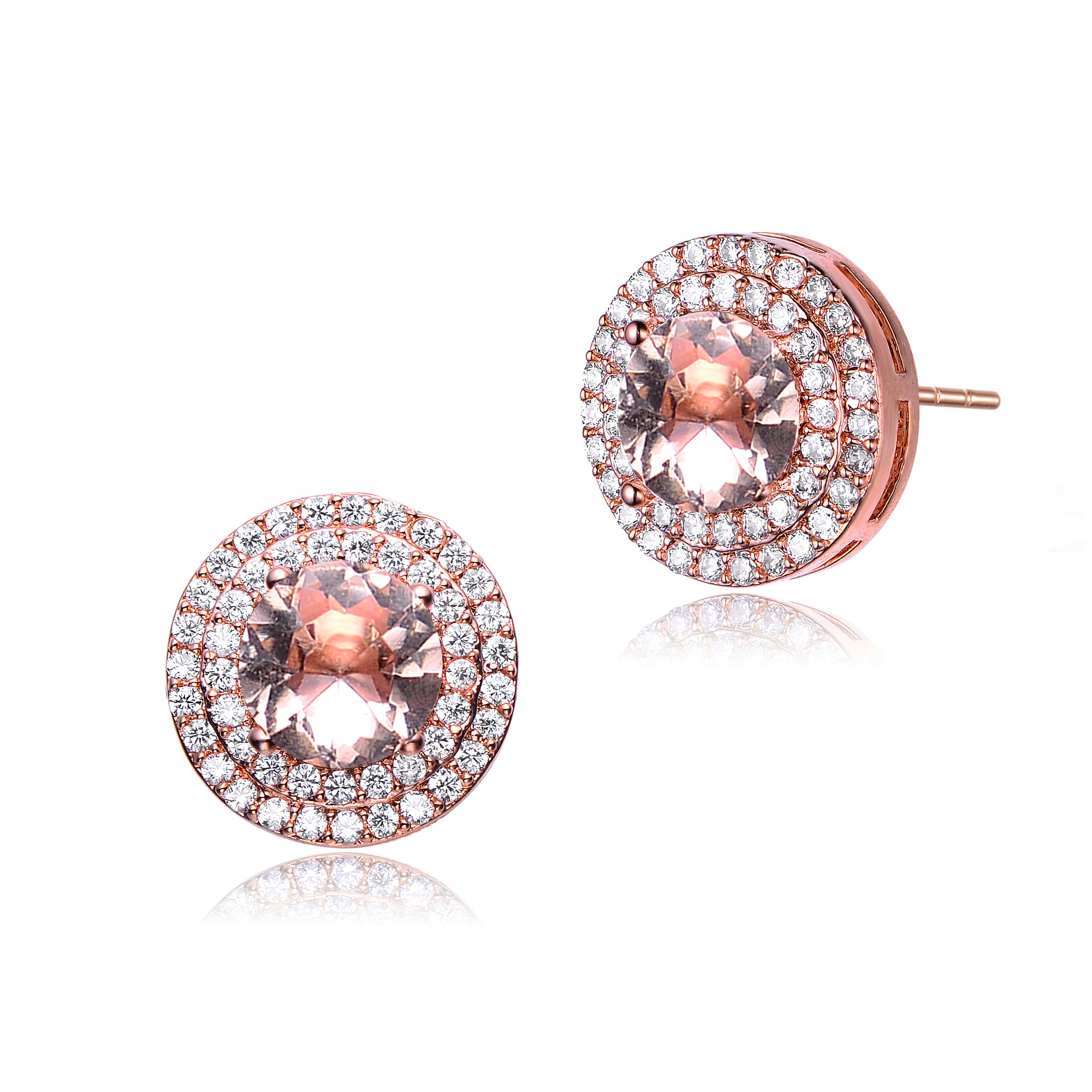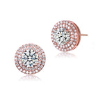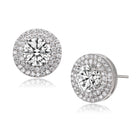 Classy Sterling silver plated cubic zirconia stud earrings. These round stud earrings feature large dazzling clear round cut cubic zirconia stone accented by small clear round cubic zirconia stones. Crafted Sterling silver and secures with butterfly closure.