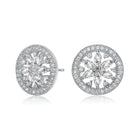 Sterling Silver with Rhodium Plated Clear Marquise with Round Cubic Zirconia Halo Wreath Earrings