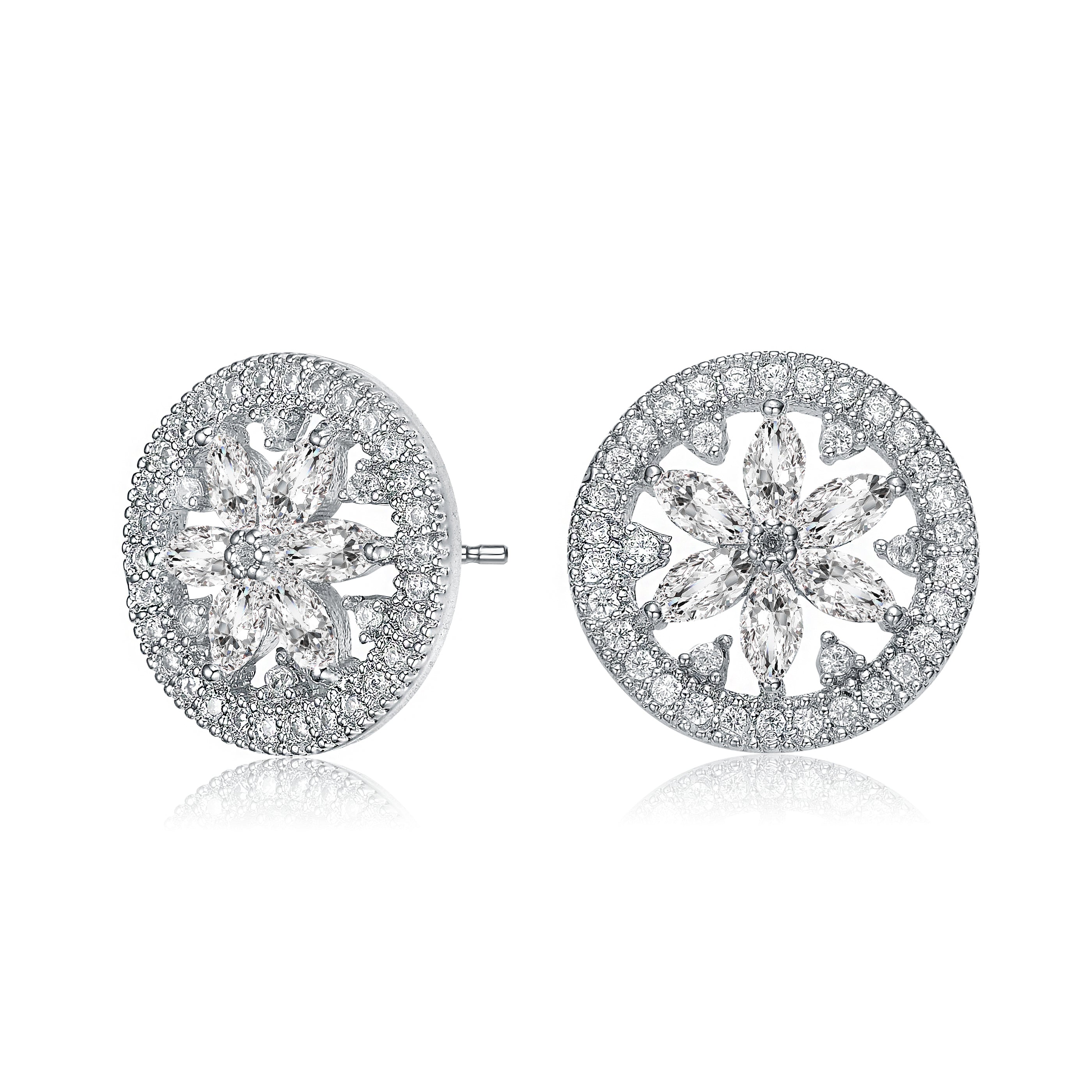 Add a little bit of shimmer to that outfit when you wear these wreath-inspired earrings. These feature a flower inspired design of clear marquise Cubic Zirconia clustered together with a dazzling halo of clear round Cubic Zirconia. These earrings are sure to glam up your look. These earrings have butterfly clasp for a secure lock.