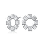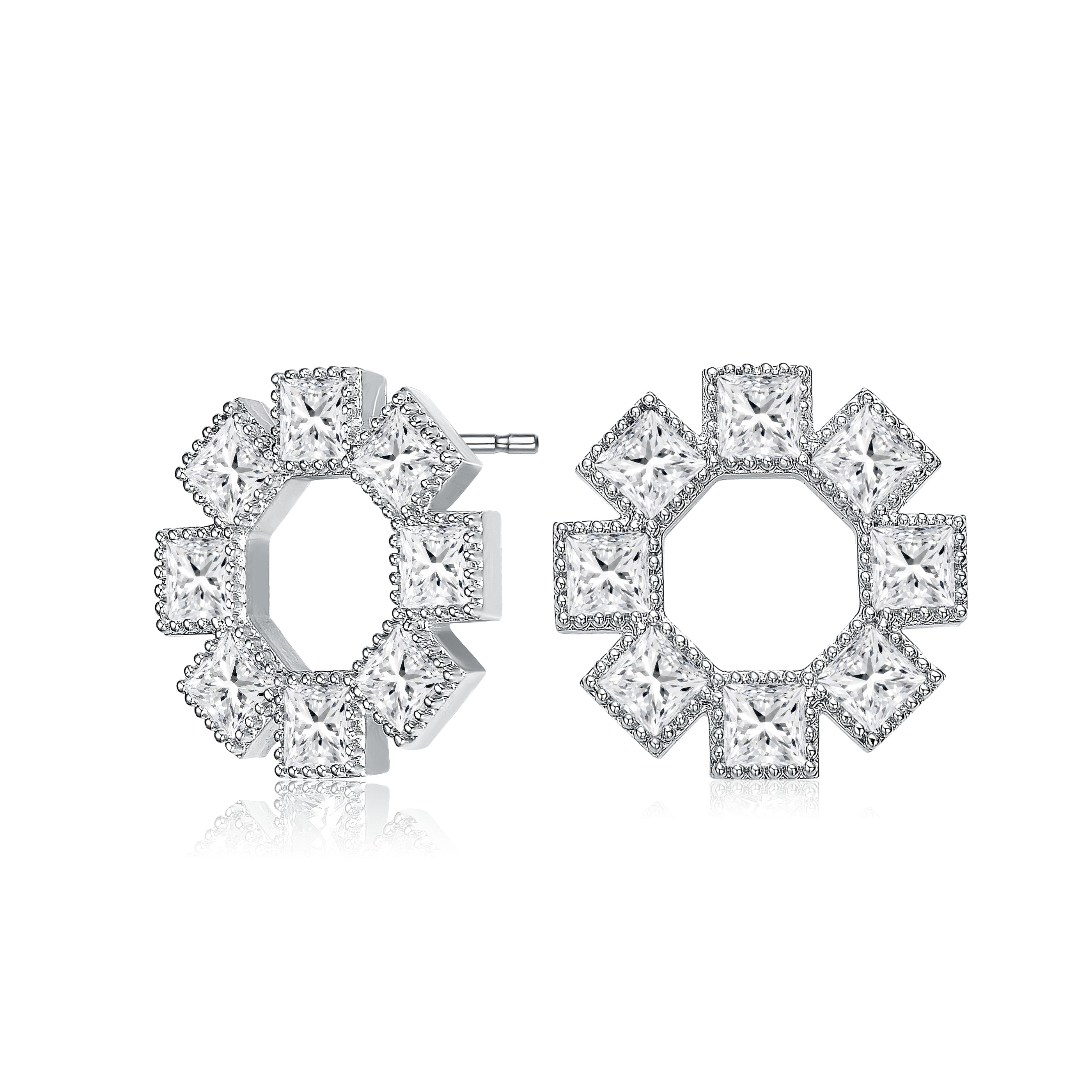 These beautiful stud earrings are sure to enhance your casual outfit. These beautiful earrings are decorated with eight dazzling clear princess Cubic Zirconias arranged side by side to form an open octagon center. Crafted of Sterling silver with Rhodium plated these earrings secure with butterfly clasp.