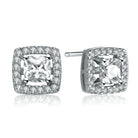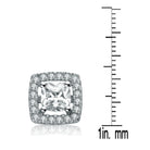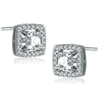 Sterling Silver Oval Cubic Zirconia Solitaire with Square Halo Earrings
