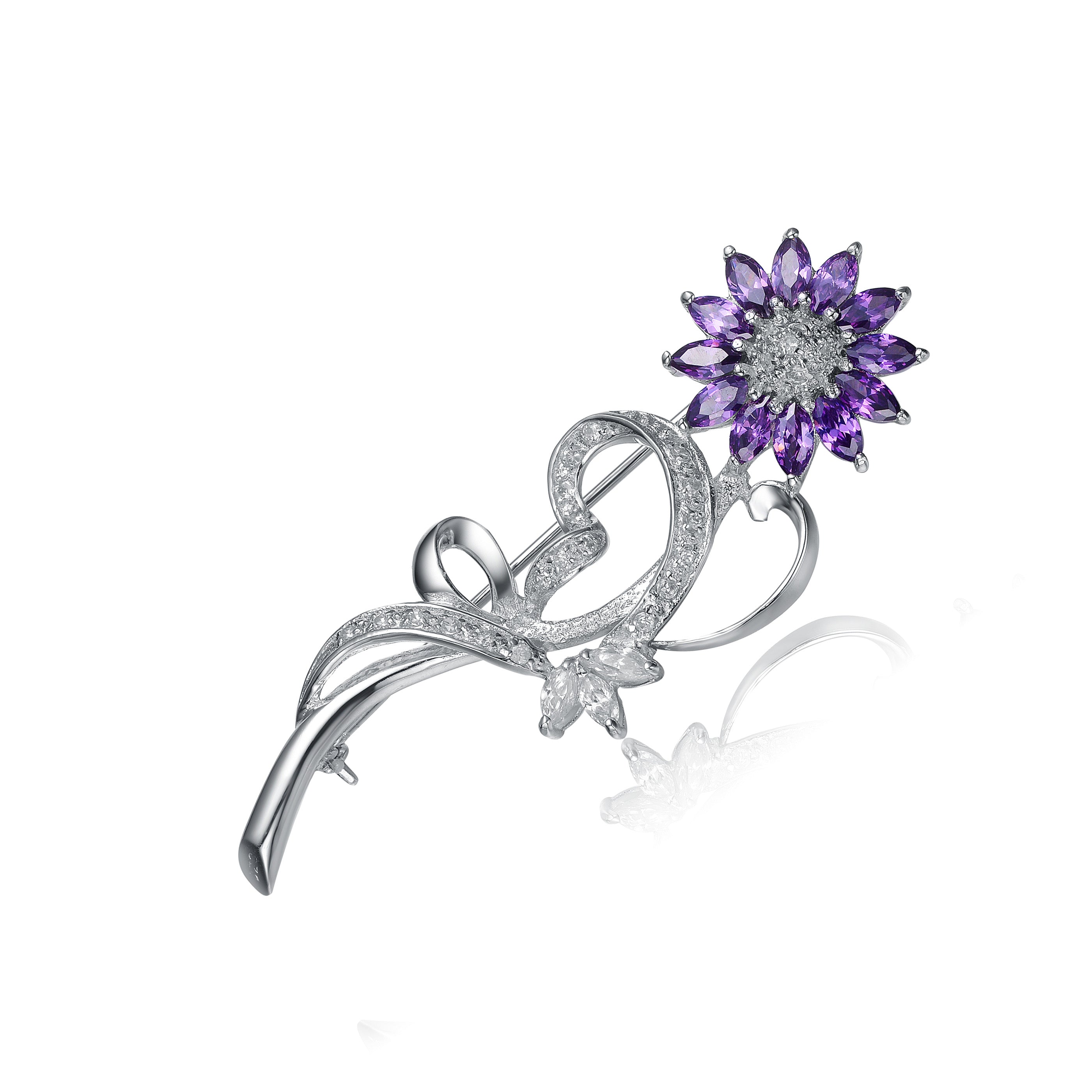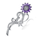 Fun and whimsical, this daisy inspired pin is perfect. Each piece features purple cz petals set in sterling silver and accented with white stones.