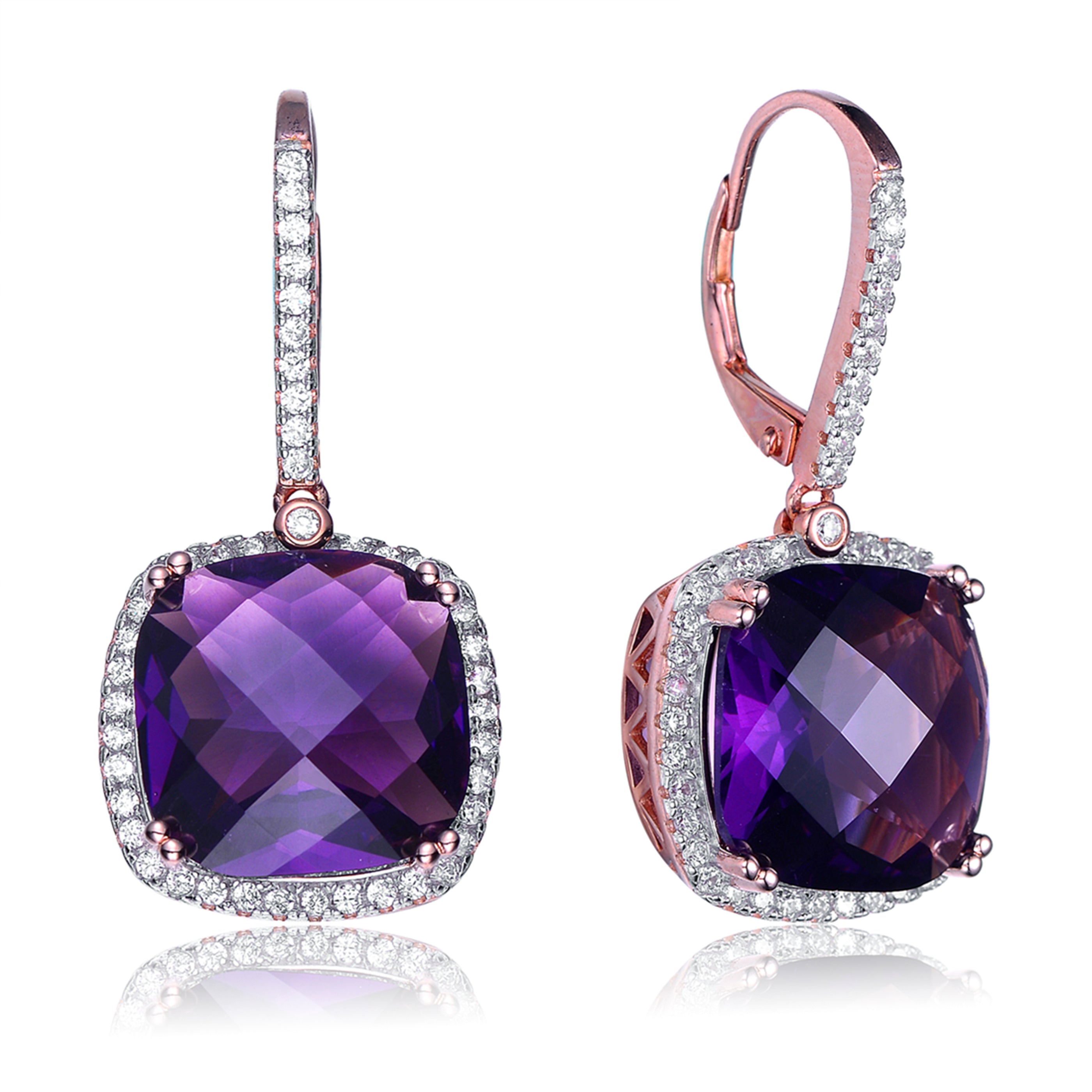 Add some sparkle to your outfit with these gorgeous drop earrings. Each piece features a bright purple cz stone accented with white solitaires.