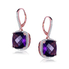 Sterling Silver Purple Cubic Zirconia Square Drop Earrings