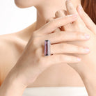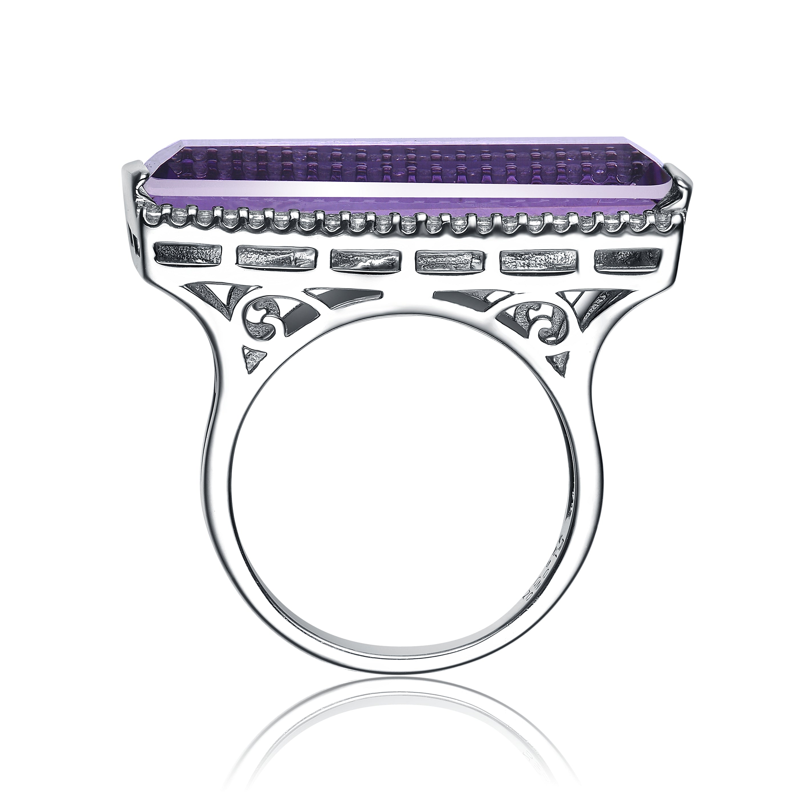A large purple cubic zirconia solitaire will capture your heart in this sterling silver ring. If you want to make a statement, do it with this ring.