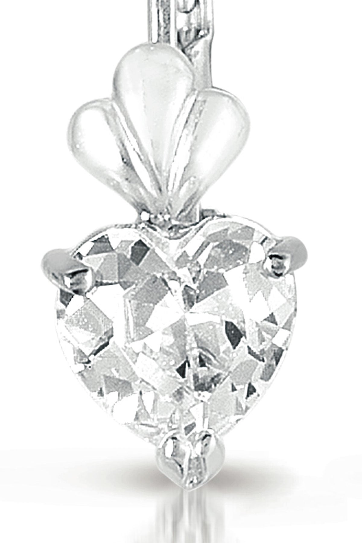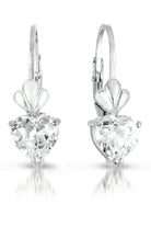 These sterling silver earrings communicate sweetness and perfection. It features a clear cubic zirconia solitaire in the shape of a heart and a leverback.