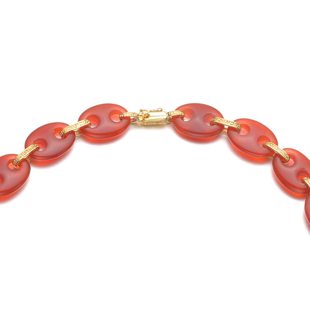 This sterling silver necklace offers a wreath of unique red beads. This necklace is definitely appropriate for the beach or other casual outings.