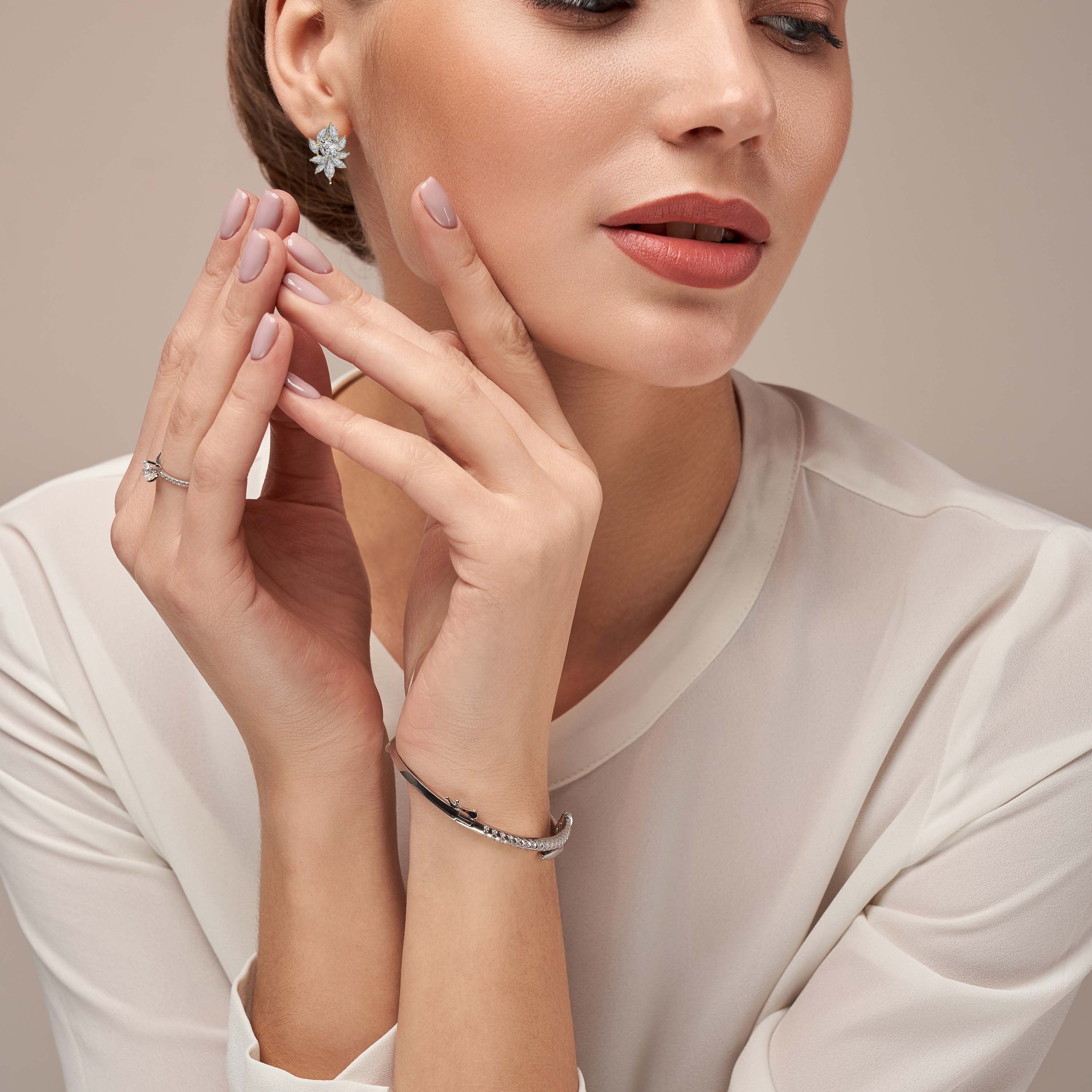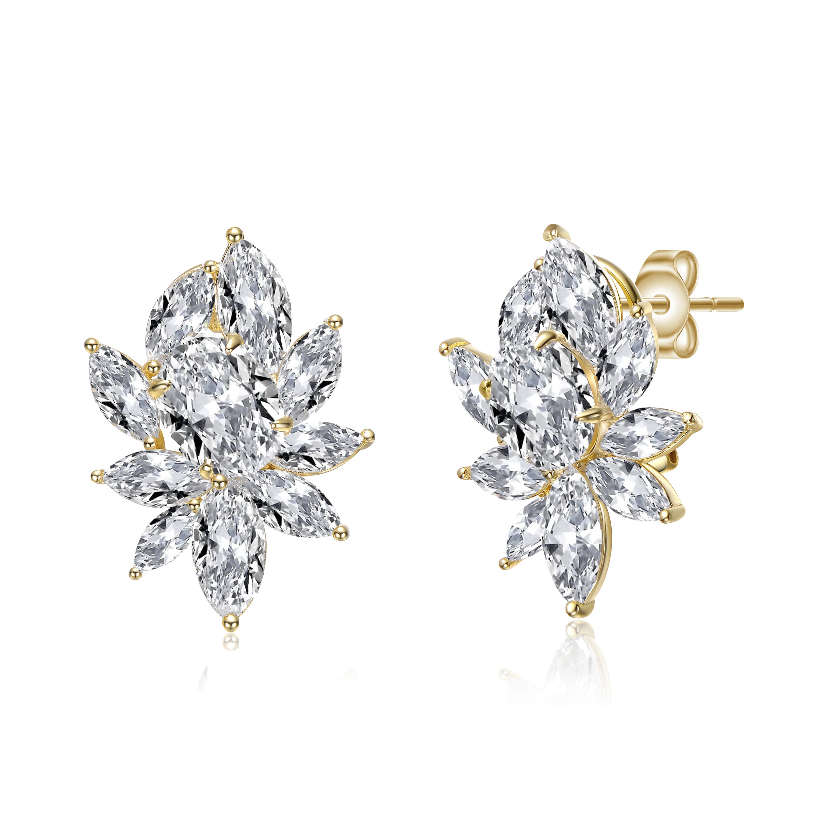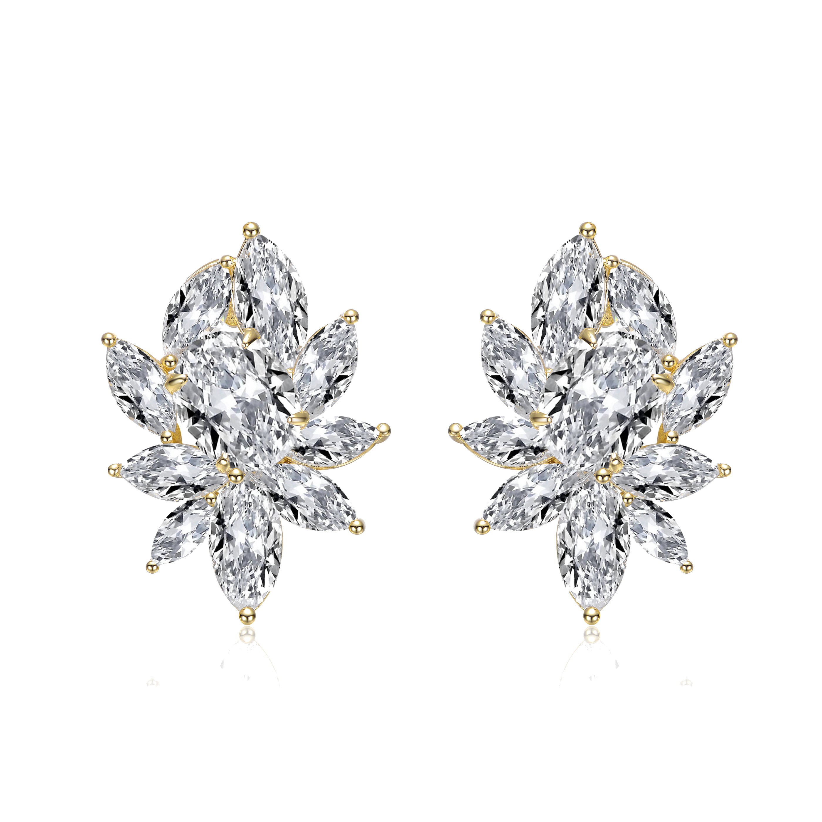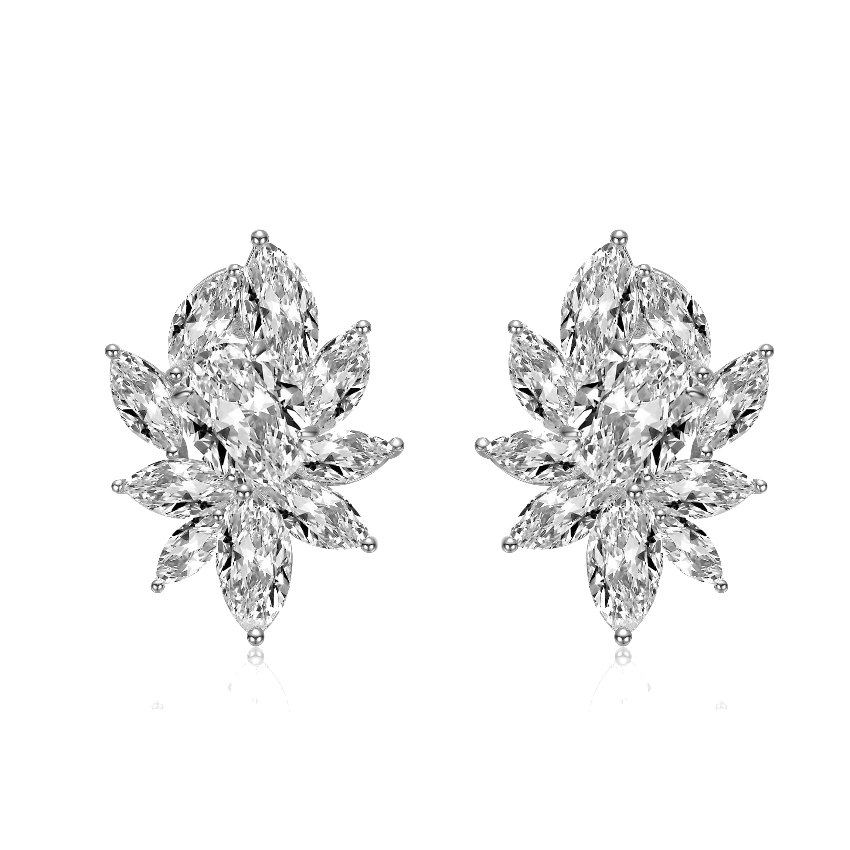 Sterling Silver Rhodium Plated Cubic Zirconia Corsage Flower Stud Earrings. These dazzling sterling silver stud earrings feature a gorgeous cluster of cubic zirconia secured in prong settings, offering a unique design inspired by floral bouquets and romantic corsages. Butterfly backs keep these pretty earrings secure, making them easy to place on and remove from the ears when worn. Gift these earrings to any loved one, or treat yourself to total glamor.