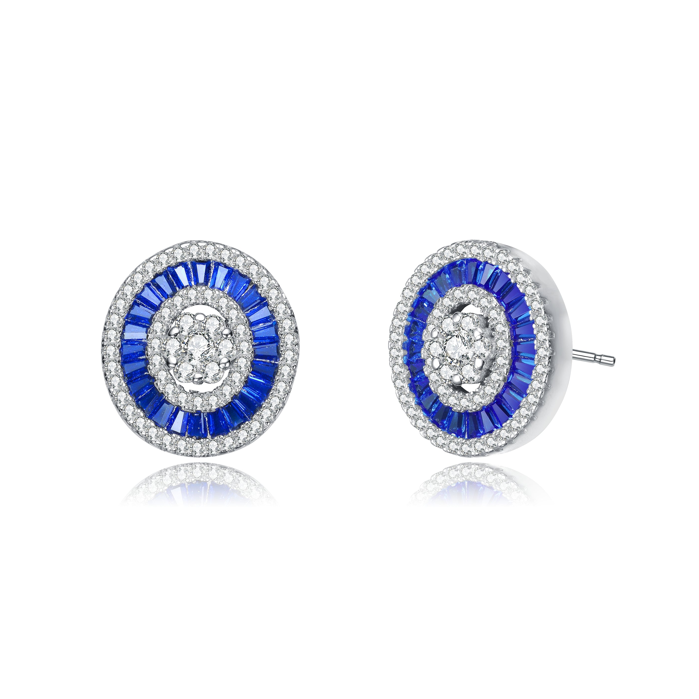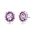These stunning earrings feature a central cluster of vibrant ruby-colored cubic zirconia stones, surrounded by a halo of sparkling clear cubic zirconia. Crafted from high-quality sterling silver and plated with rhodium, these earrings offer both durability and a brilliant shine. The striking contrast between the deep ruby hue and the clear stones creates an eye-catching effect, making these earrings a perfect accessory for any occasion, whether it’s a special event or everyday elegance. Add a touch of glamour to your jewelry collection with these exquisite earrings.