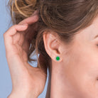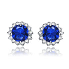 Sterling Silver Sapphire Cubic Zirconia Button Earrings