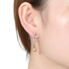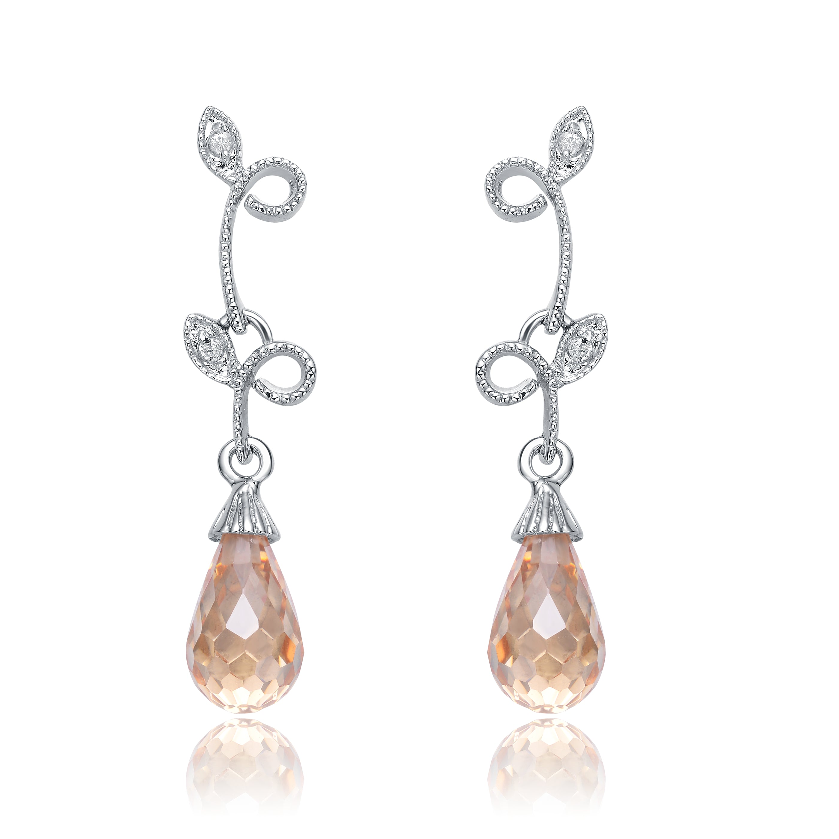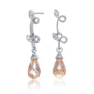 This image showcases a pair of sterling silver earrings, each featuring a sparkling teardrop-shaped cubic zirconia dangling gracefully at the bottom. The earrings are adorned with additional cubic zirconia accents along the twisted silver paths leading to the main stone, creating an intricate and luxurious design. The combination of the polished silver finish and the clear and champagne-colored stones exudes sophistication, making these earrings a captivating choice for formal occasions or as a statement piece for everyday elegance