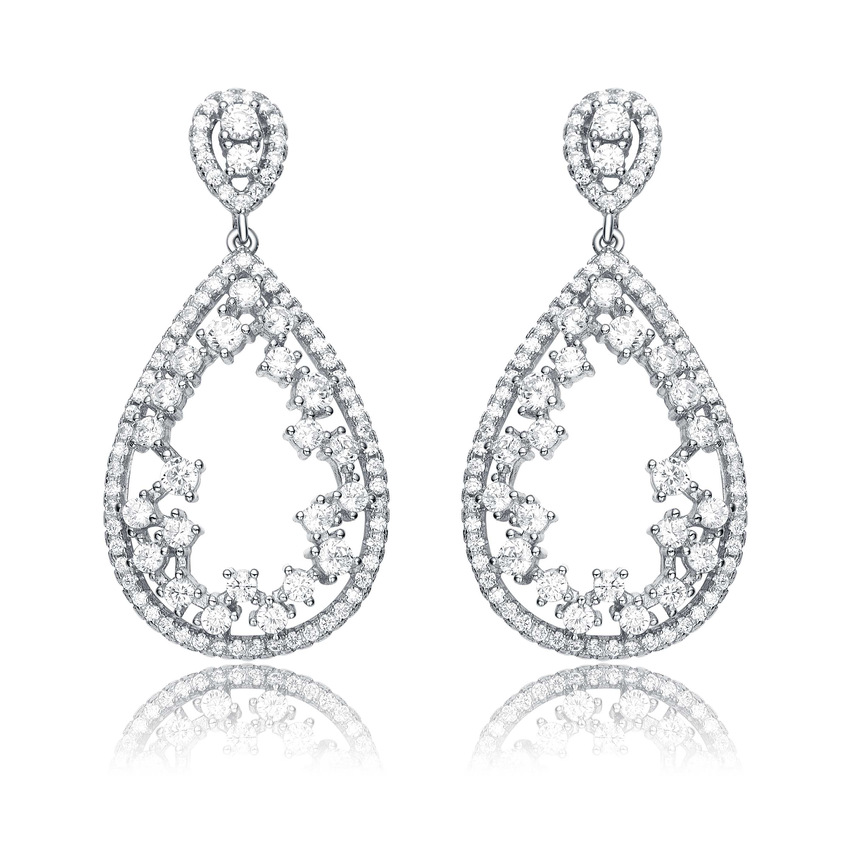 Sterling Silver Teardrop Shaped Clear Cubic Zirconia Accent Drop Earrings