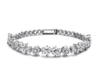 This elegant bracelet features dazzling clear round Cubic Zirconia pronged together to create a flower design. It is also accented with clear marquise Cubic Zirconia that are also arranged to create a four petal flower and these flowers are separated with a cluster of small round Cubic Zirconia. This bracelet is set in Sterling silver with Rhodium plated and the bracelet secures with a slide clasp.