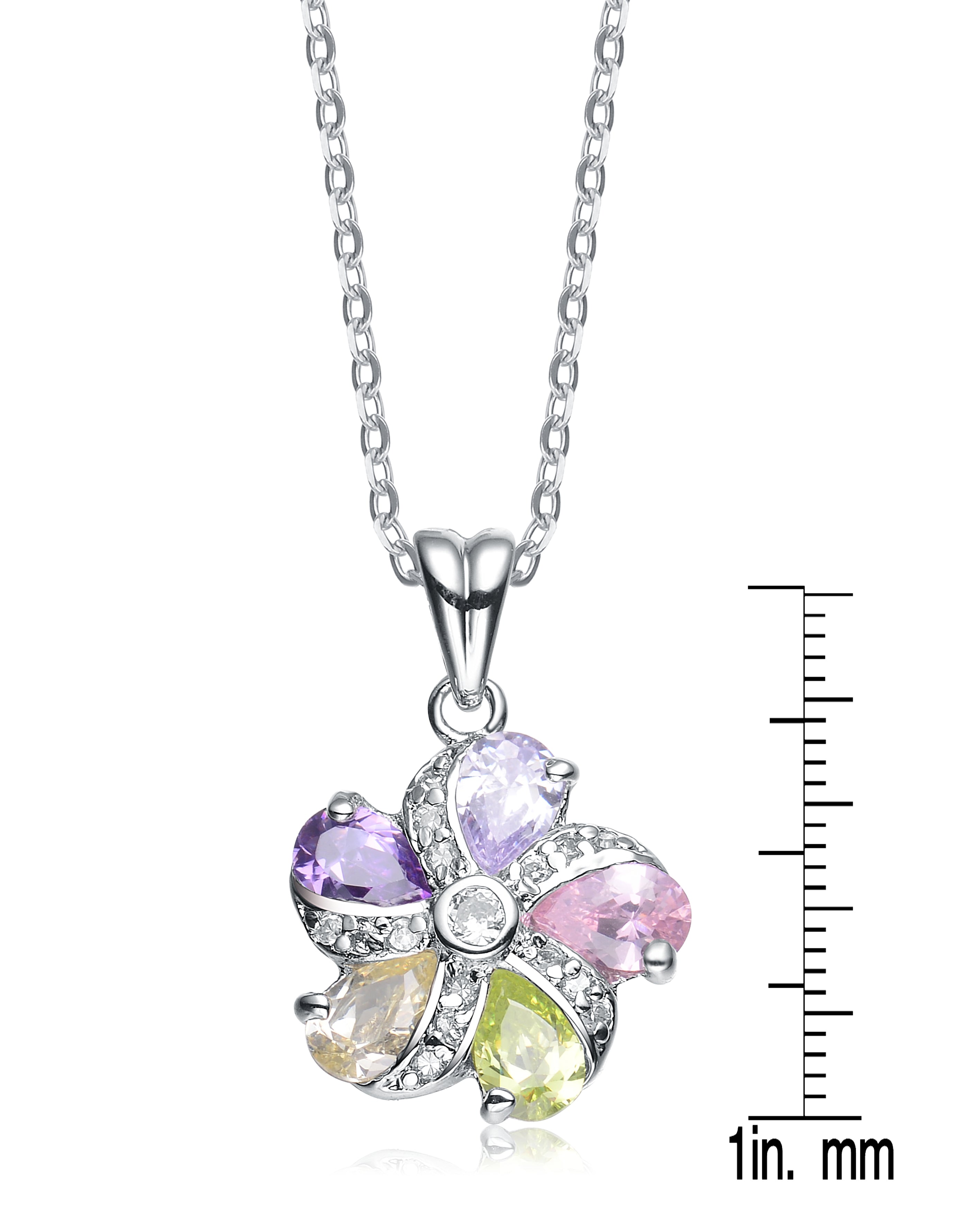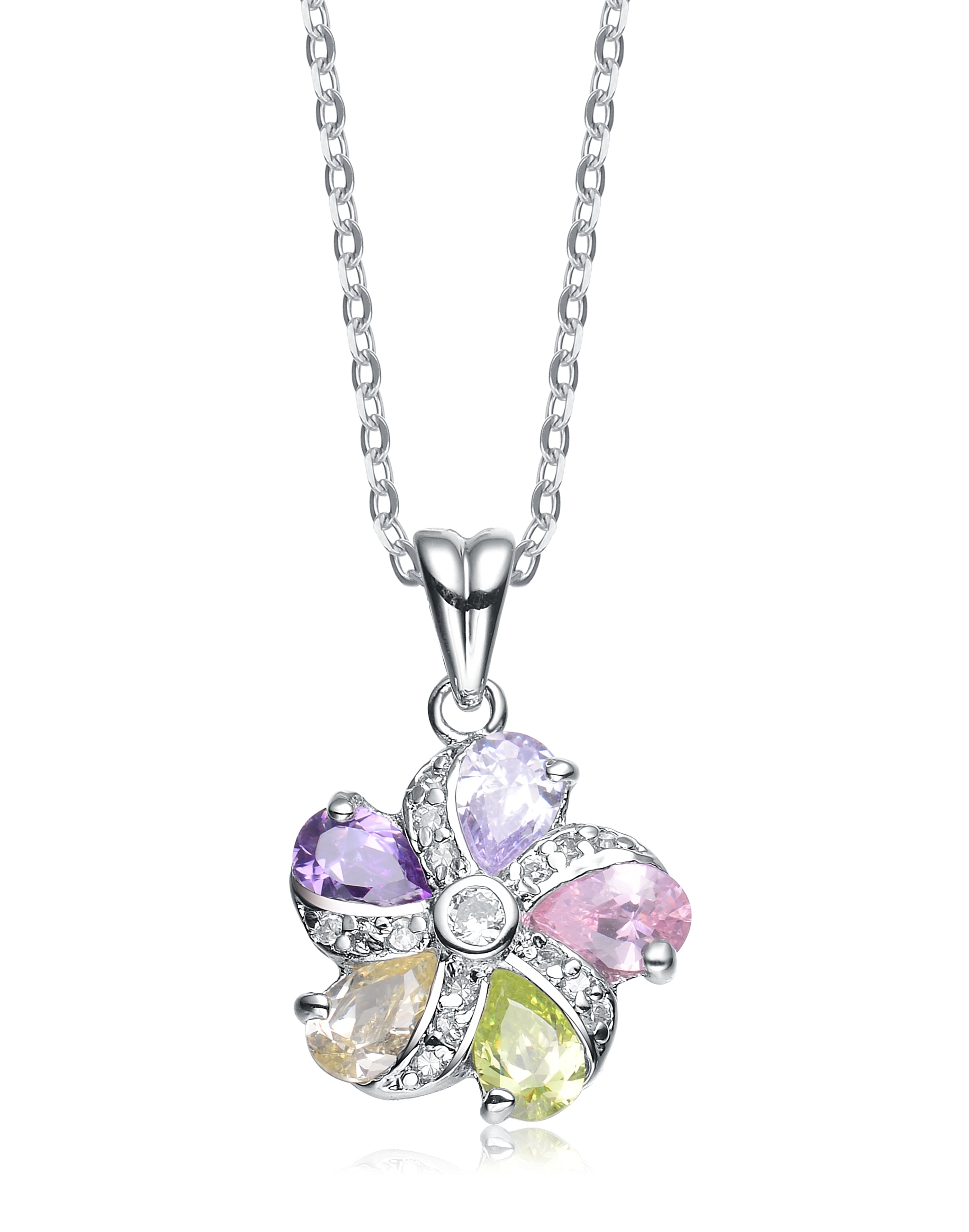 Sterling Silver White And Pink Cubic Zirconia Flower Pendant