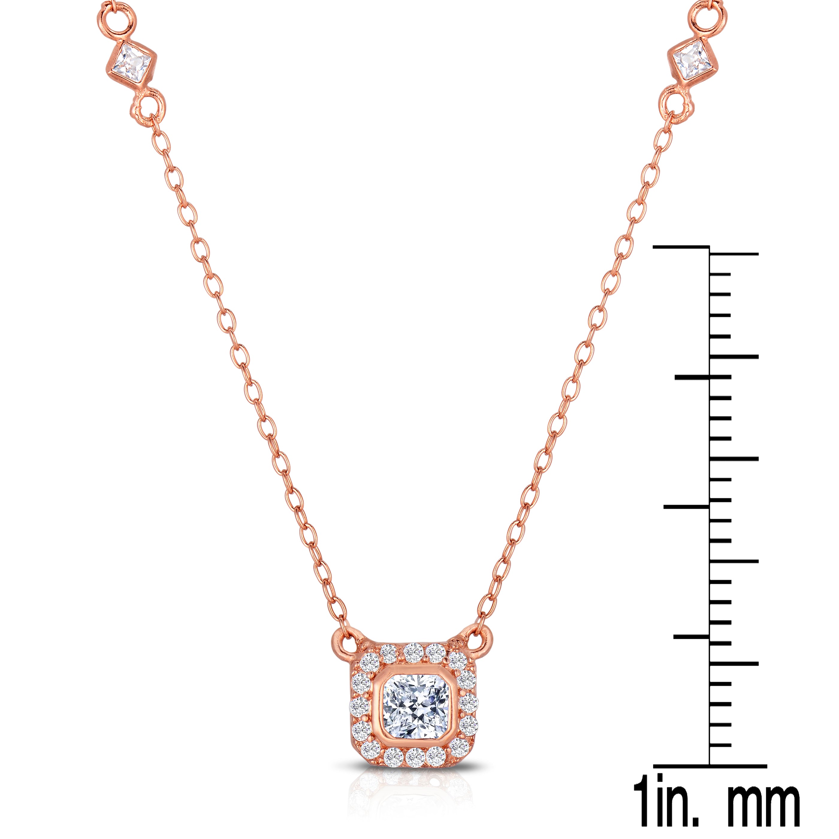 This sterling silver necklace with pendant is a glamorous piece with a very interesting and stylish design. The pendant is a square frame embedded with white cubic zirconia stones embracing an intricate design; the necklace chain has a beautiful medium size zirconias on both ends near the lock.