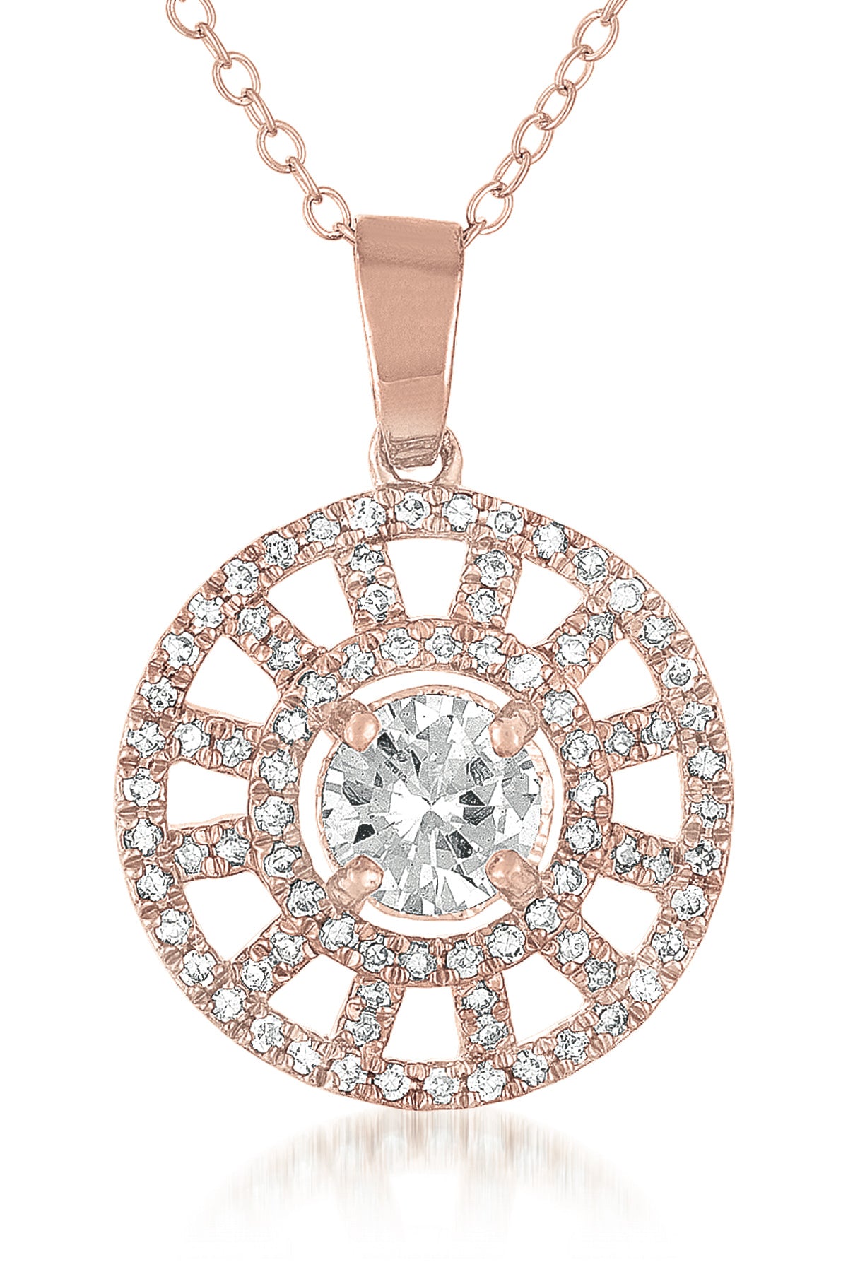 This is a lucky wheel sterling silver pendant designed with a medium-sized white cubic zirconia stone in the middle and a lot of small stones in every segment of the wheel and its round edge. The wheel’s pink body dazzles even in the dimmest light while the large clasp is also bedazzled as well.