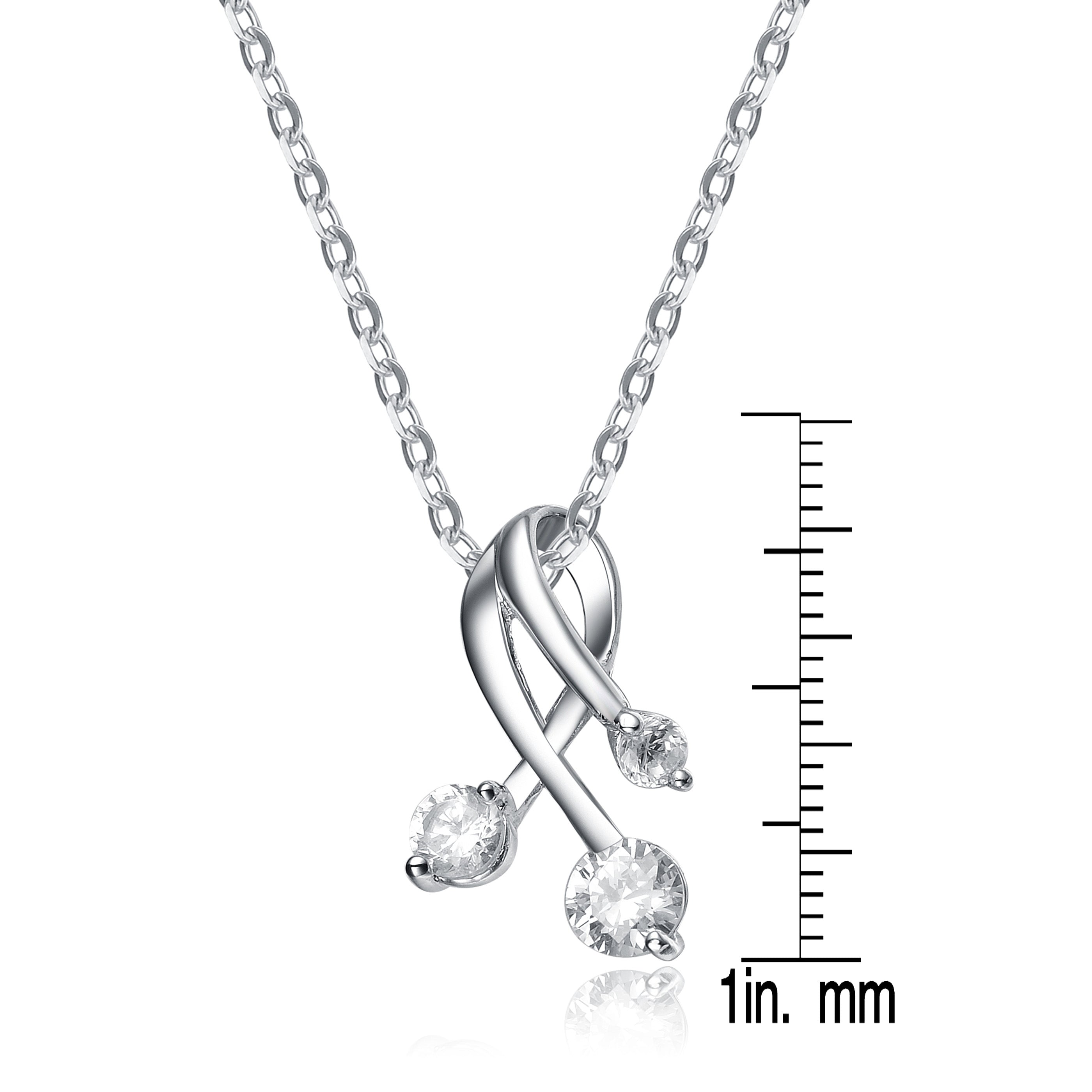 Sterling Silver White Cubic Zirconia Rhodium Plated Strands Pendant