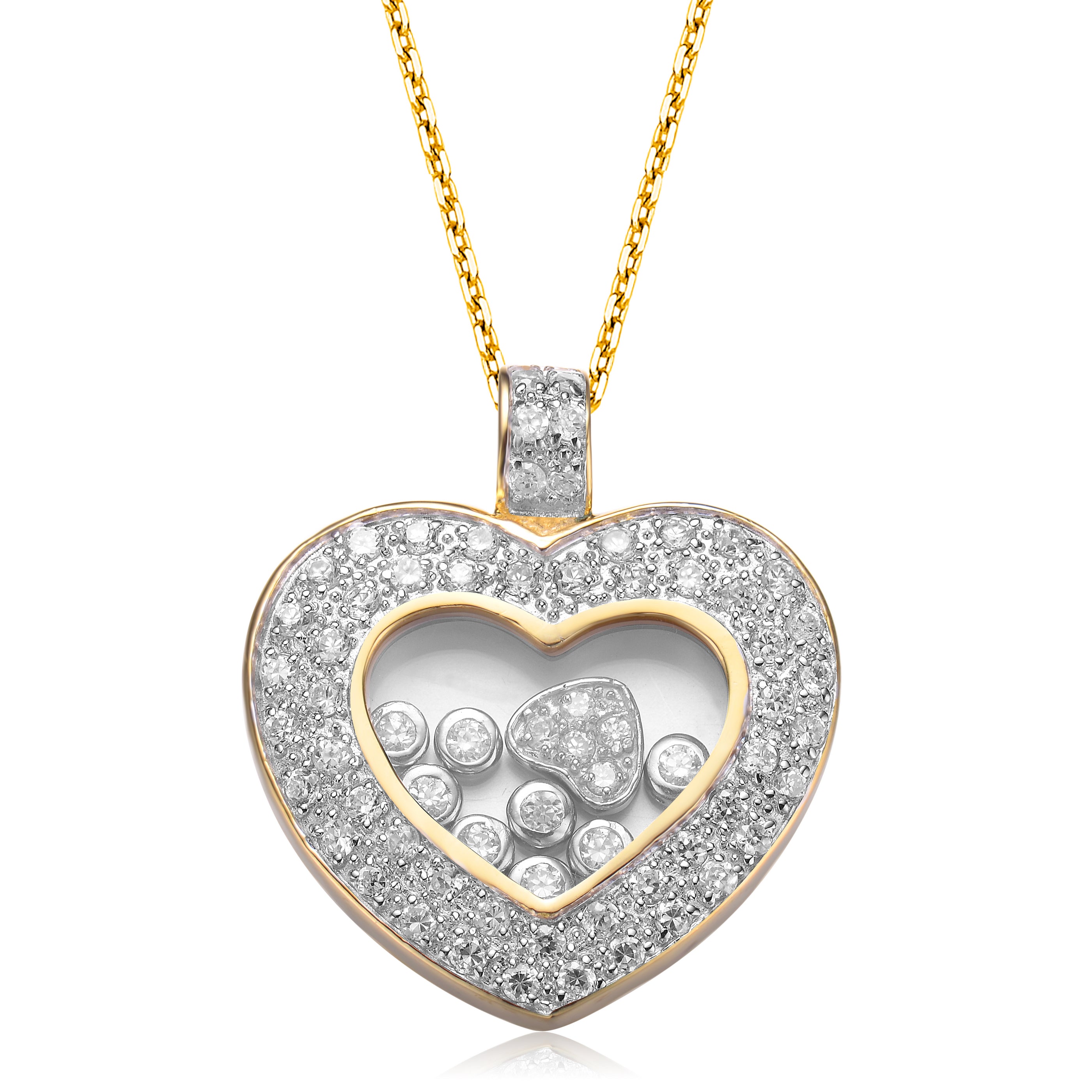 This is the perfect accessory for any outfit to wear in any occasion. Precious and utterly feminine, this heart shaped pendant is made of brilliant white cubic zirconia and gold plated sterling silver and is very affordable.