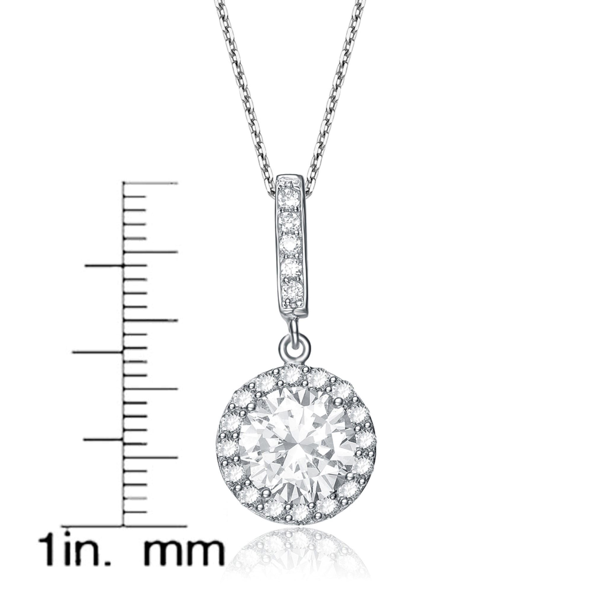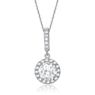 Sterling Silver White Gold Plated Cubic Zirconia Round Stud Style Drop Pendant