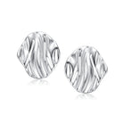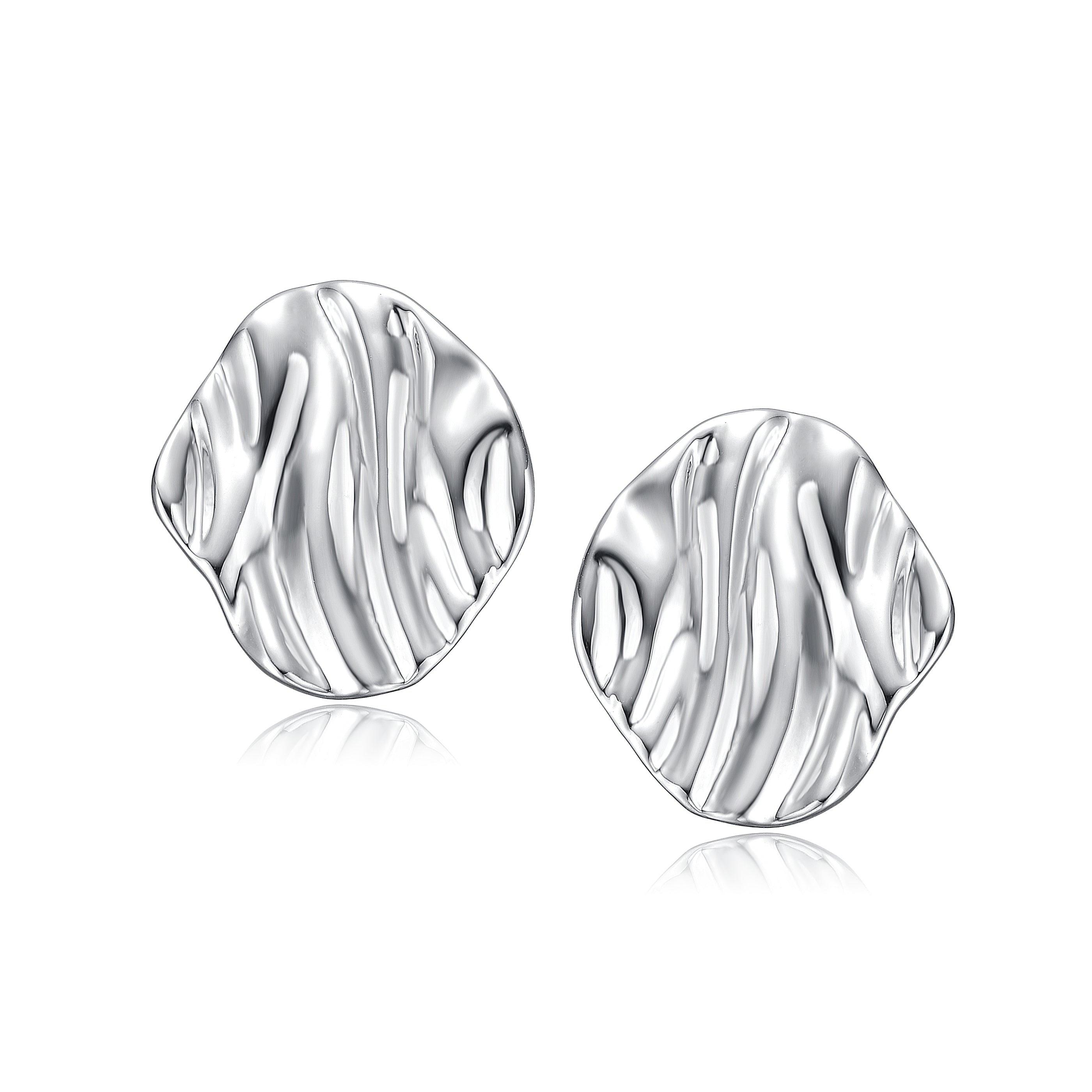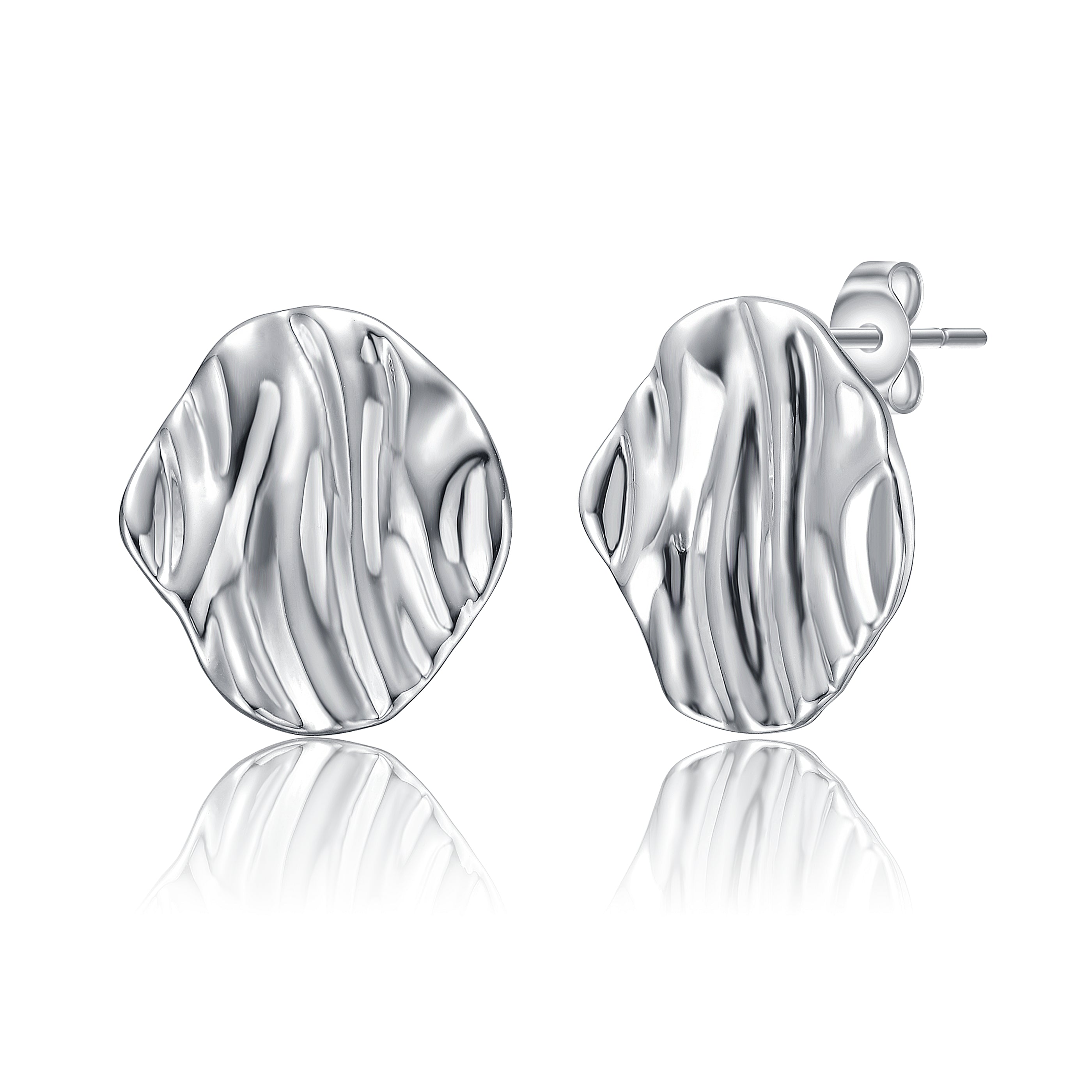 Add a touch of modern elegance to your look with these sterling silver, White Gold Plated stud earrings. Featuring a unique rippled surface, they reflect light beautifully, creating an eye-catching effect. Perfect for adding a sophisticated sparkle to any outfit.