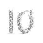 These sparkling hoop earrings feature round brilliant cut -like cubic zirconias prong set on the exterior and interior. Click-top posts keep these earrings secure, perfect for wearing day, night, to work, or on special occasions with their timeless elegance and understated glamor.