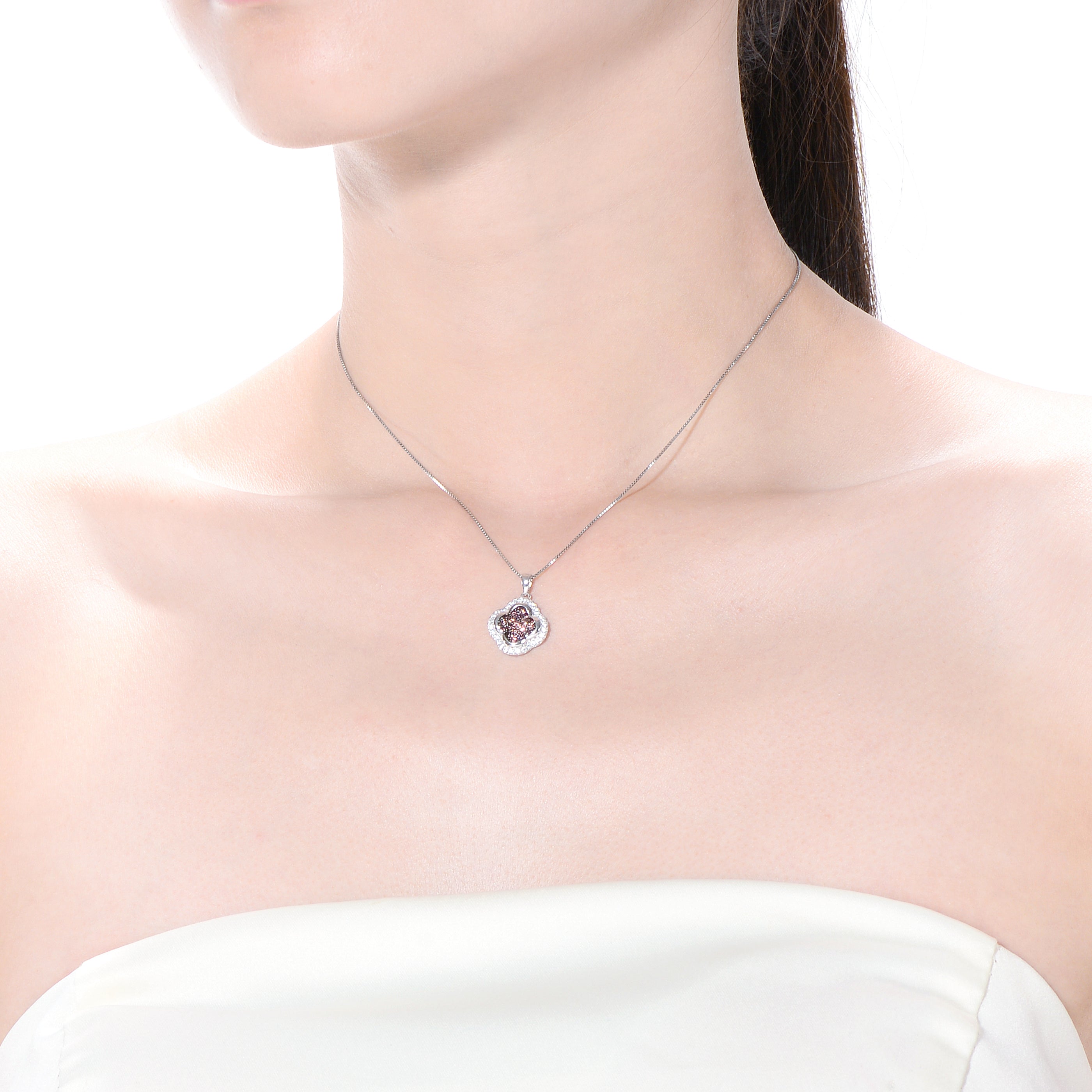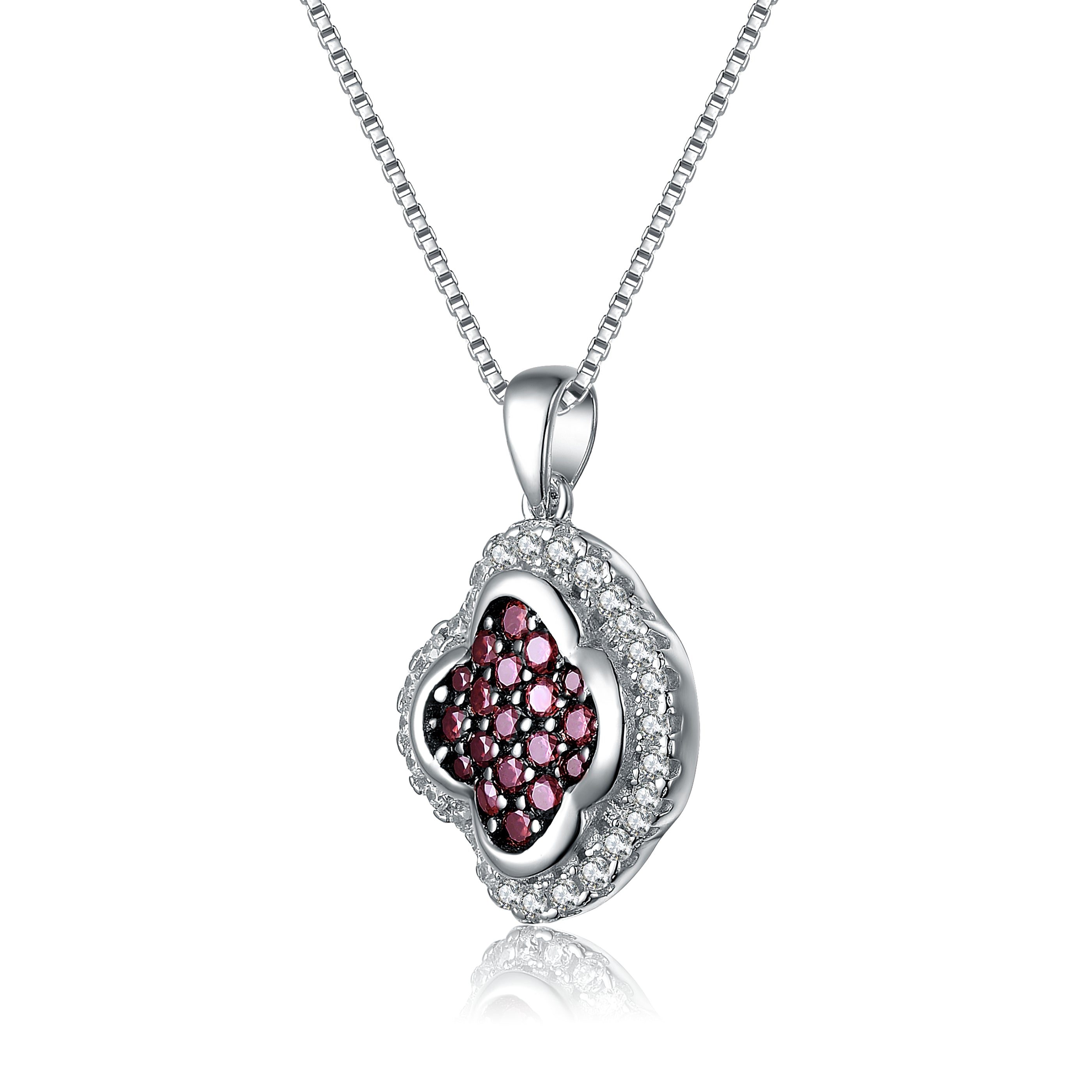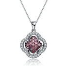 This sterling silver necklace features a pave pendant of wine colored cubic zirconias. This is a piece that can be passed down for generations to come.