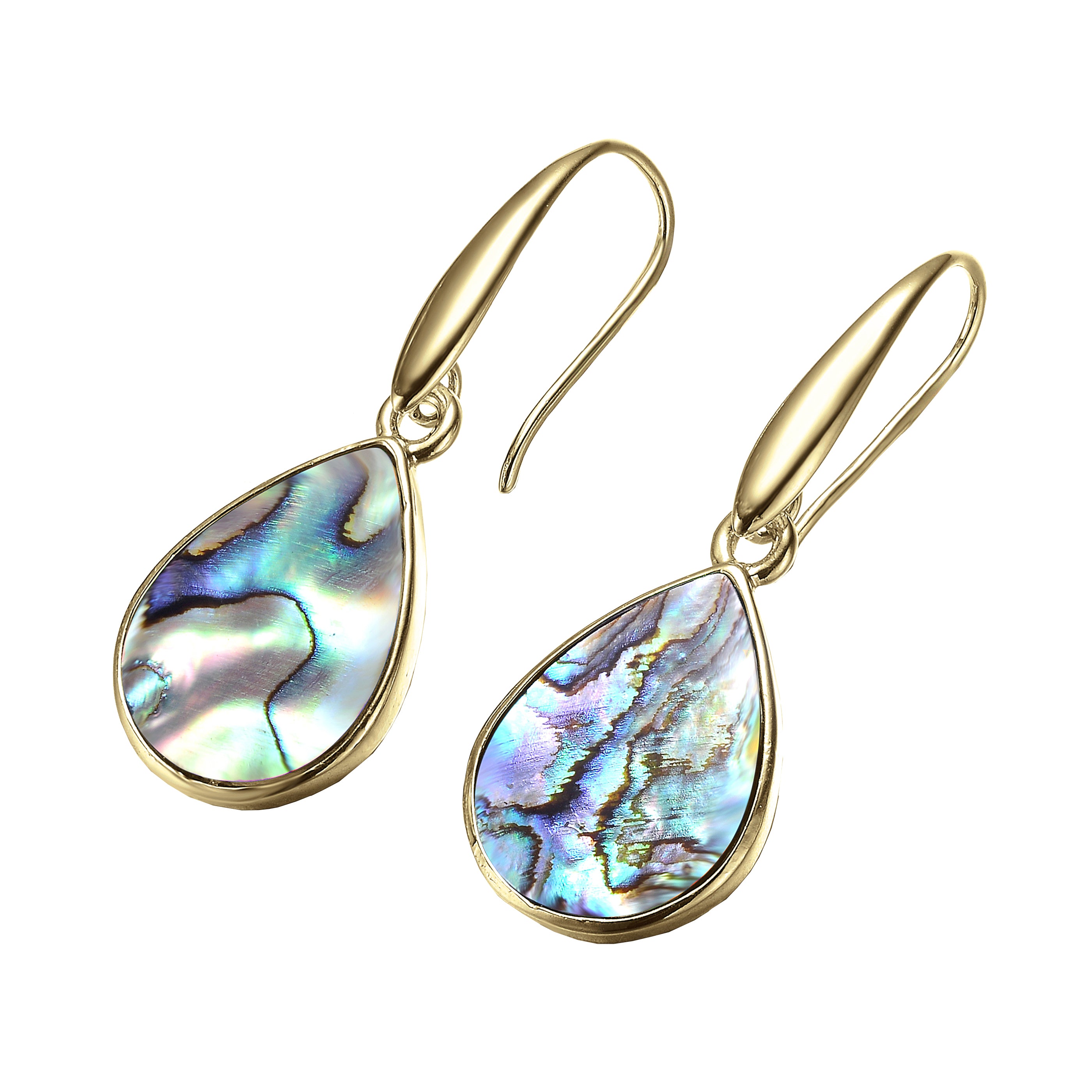 Sterling Silver with 14K Gold Plated and Abalone Teardrop Drop Earrings