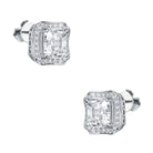 Sterling Silver with 2.50ctw Radiant Lab Created Moissanite Halo Vintage Geometric Square Stud Earrings