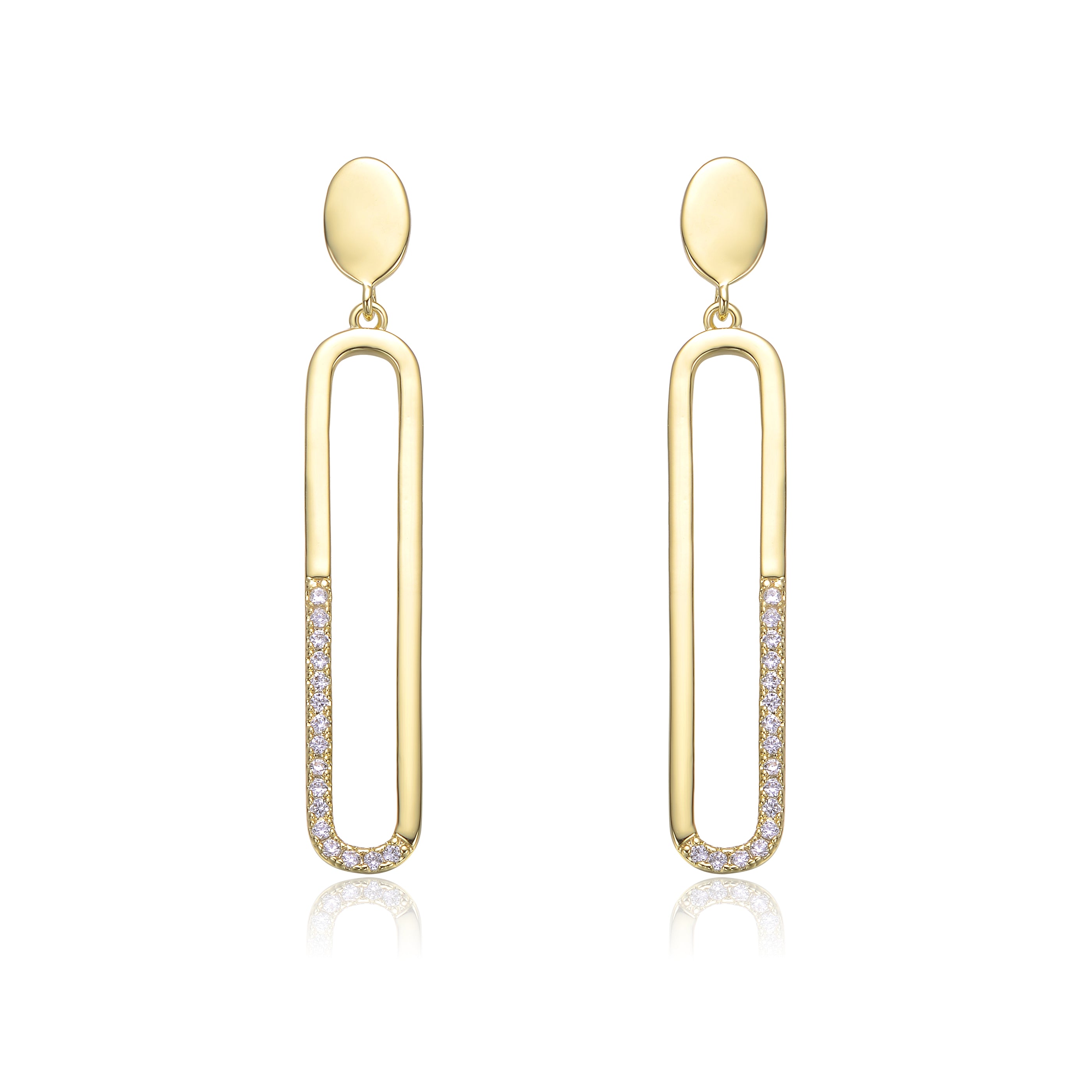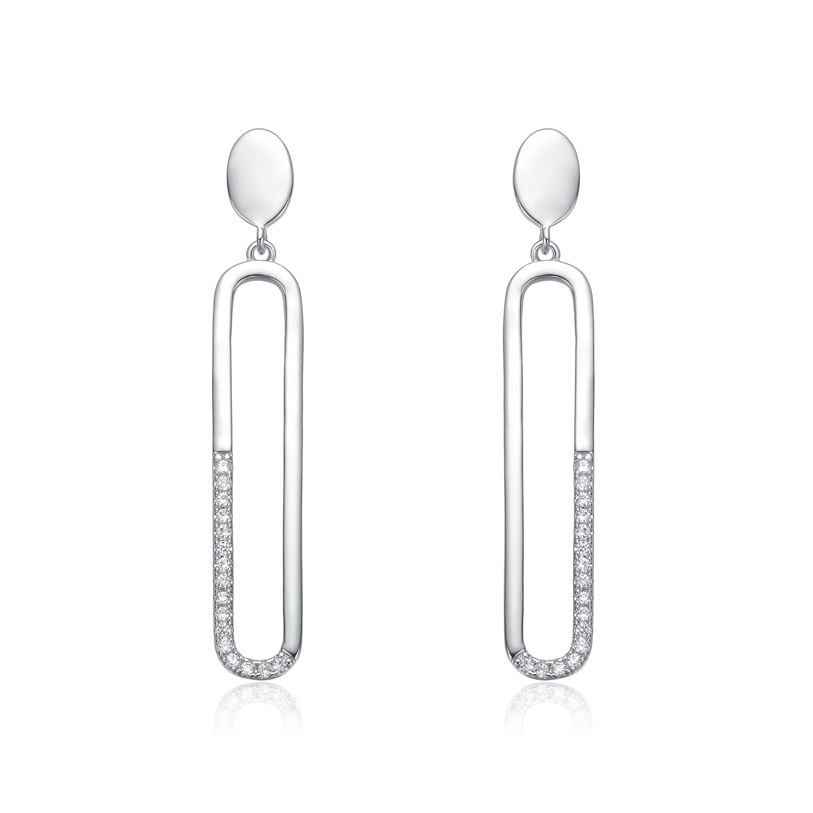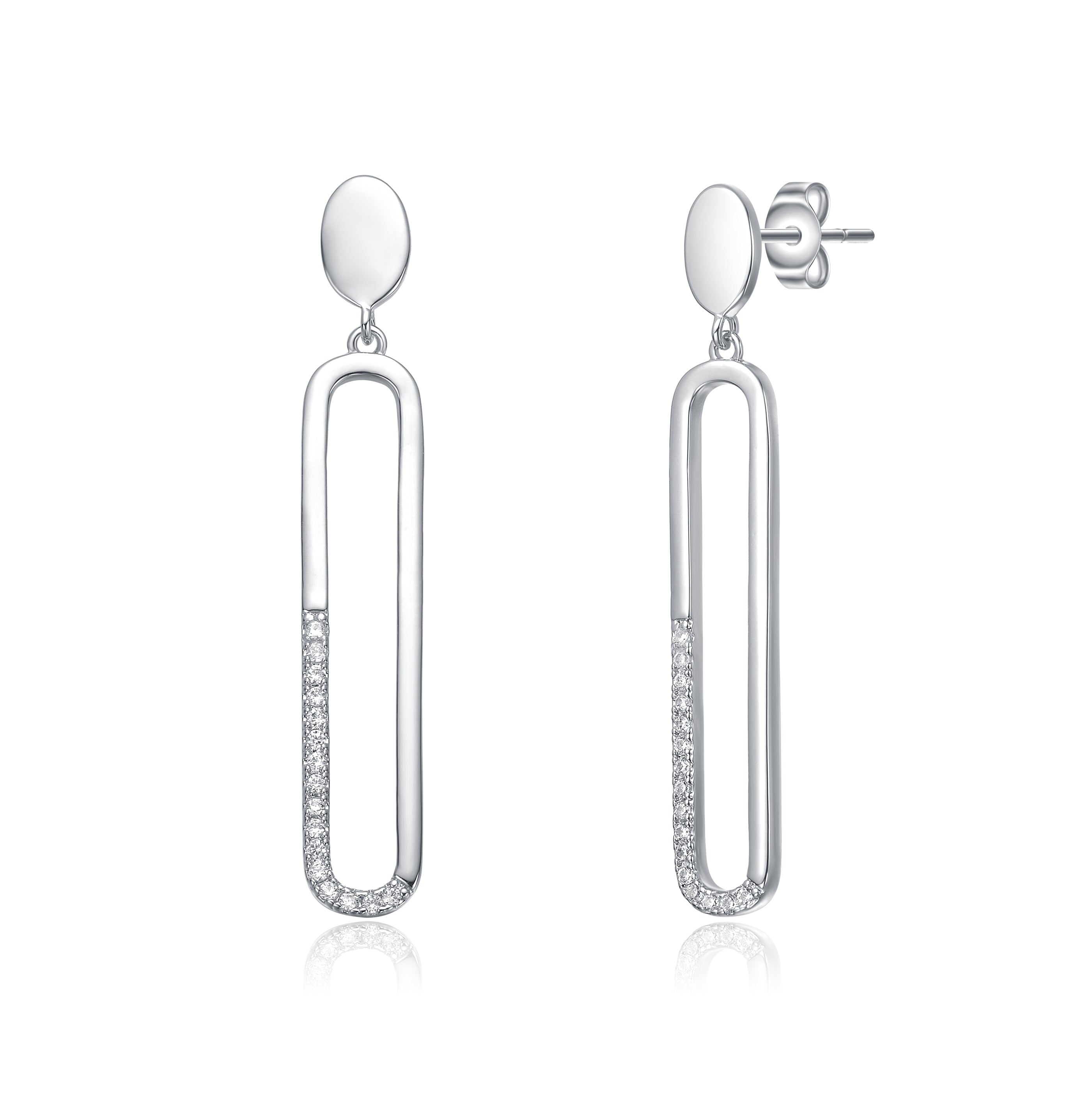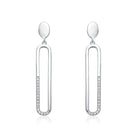 Add a touch of elegance with these sterling silver oval drop earrings. White Gold Plated or 14K Gold Plated, they feature clear cubic zirconia pave accents for a sophisticated sparkle. Their versatile design makes them perfect for both everyday wear and special occasions.