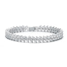 Nothing says luxury like a beautiful tennis bracelet, the perfect icing for any attire. Sparkling round brilliant cut -like cubic zirconias prong set in a 2-stone setting gives this design stunning cluster links. A fold-over snap clasp keeps this dazzling bracelet secure, all crafted from brightly polished sterling silver.