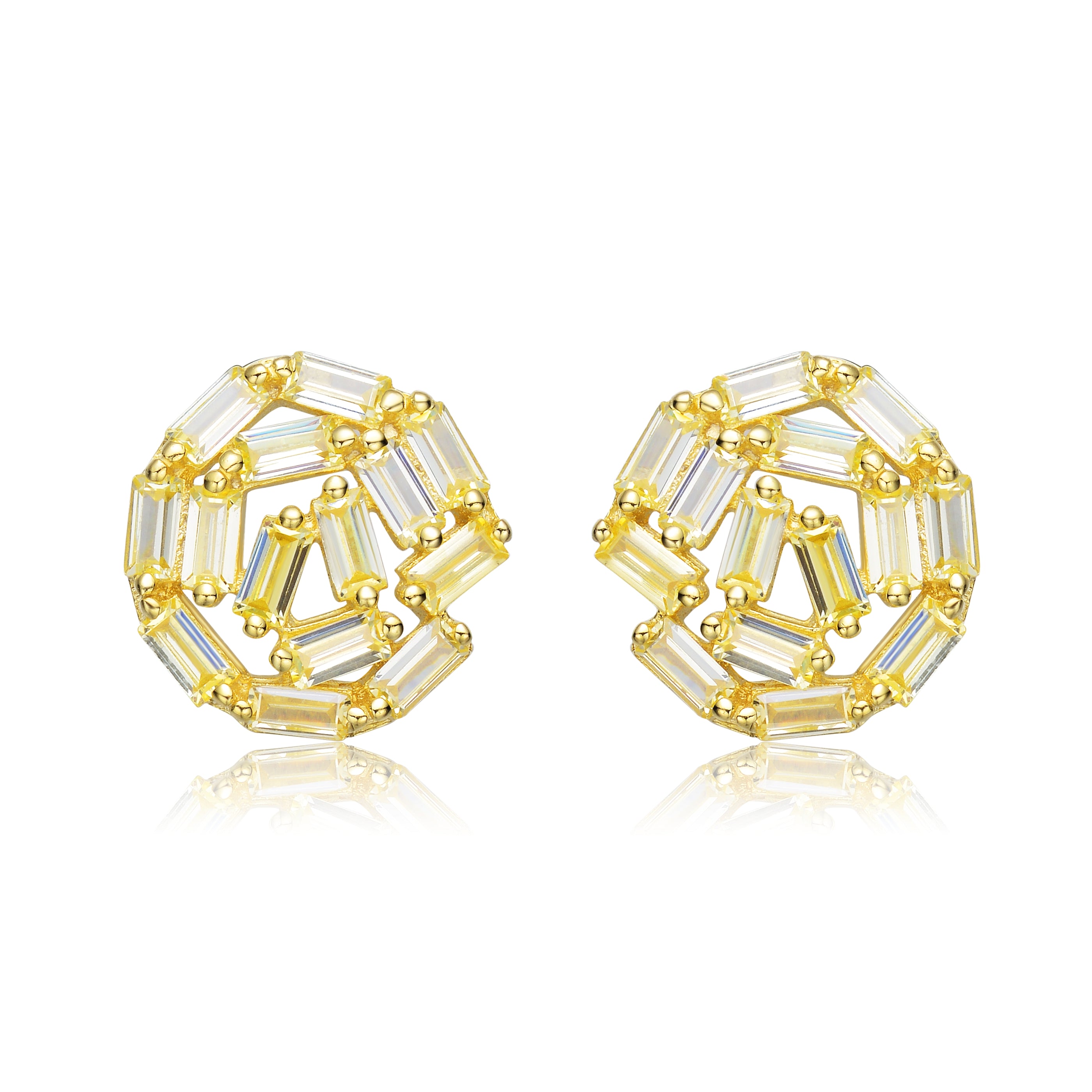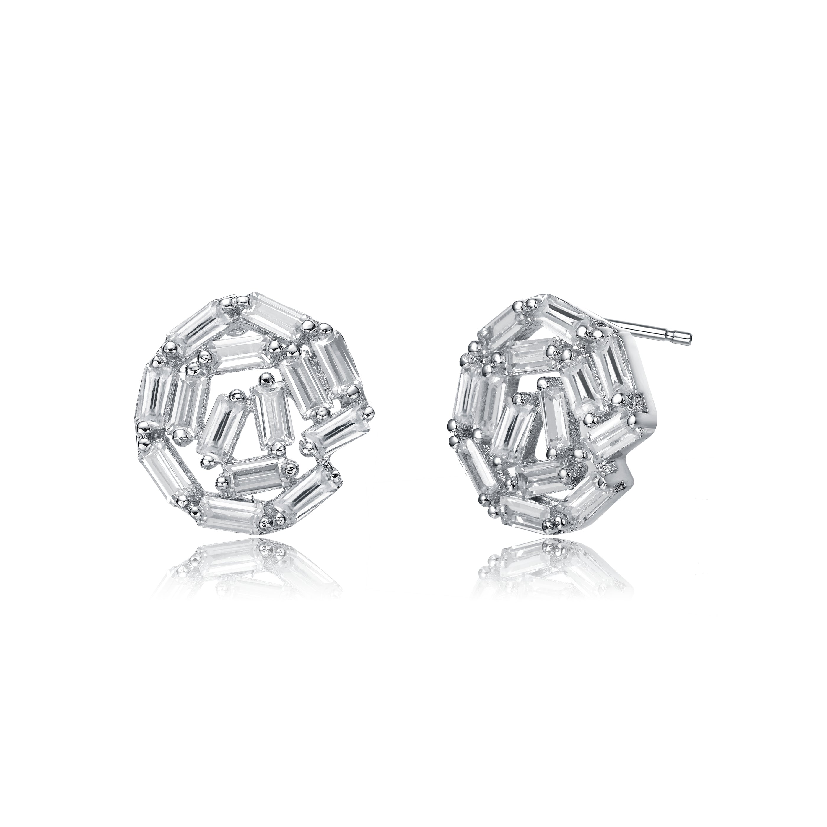 These fashionable studs are versatile enough to complement any outfit. The pair with bundle inspired shape features clear baguette Cubic Zirconia. These Sterling Silver with Rhodium plating are secured with Butterfly clasp.