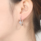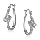 Sterling Silver with Rhodium Plated Clear Round Cubic Zirconias Pave Set Modified Hoop Earrings