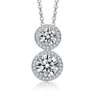 This classy Sterling silver with Rhodium plated drop necklace is just the ticket for your next soirée. It features two circular drop pendant adorned with clear round Cubic Zirconia center piece haloed with small round Cubic Zirconia. This necklace has a spring ring closure to ensure a secure and comfortable fit.