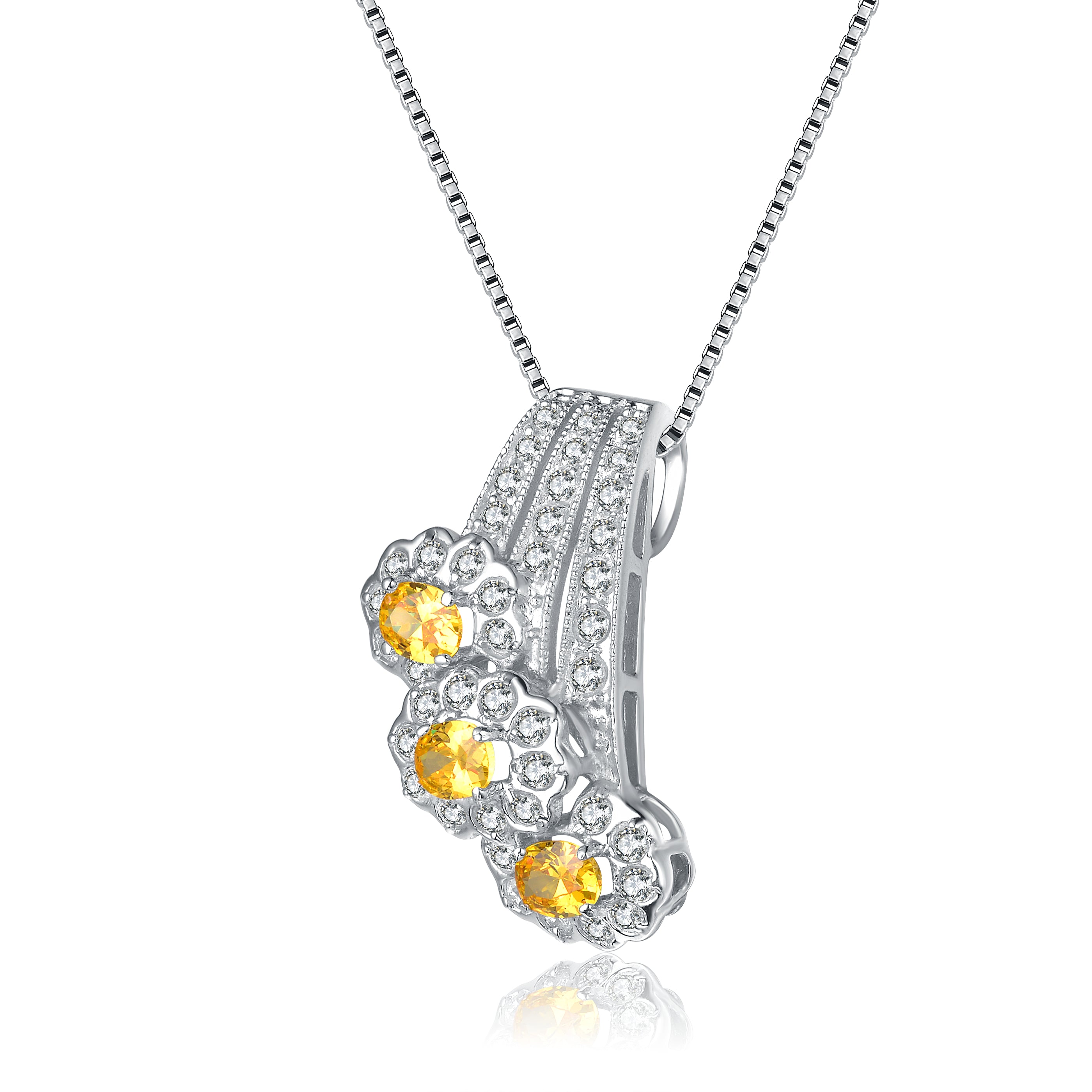 This sterling silver necklace offers a subdued look. It features clear and yellow cubic zirconia stones that will drape gently on the neckline.