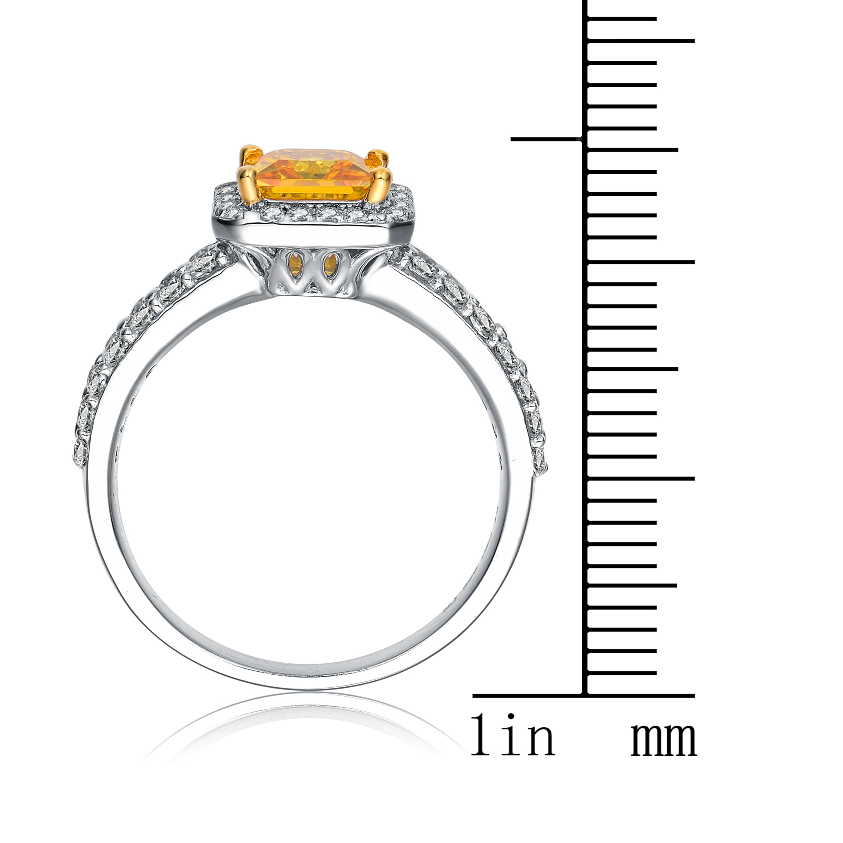 Sterling Silver Yellow Cubic Zirconia Brilliant Cut Halo Ring (Double Band)