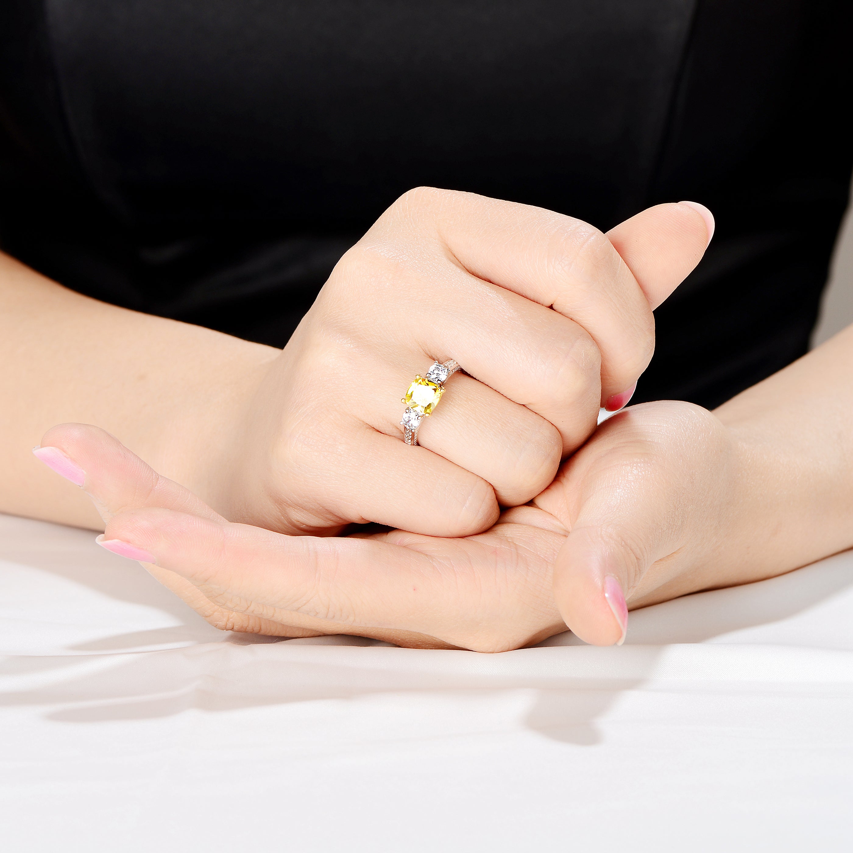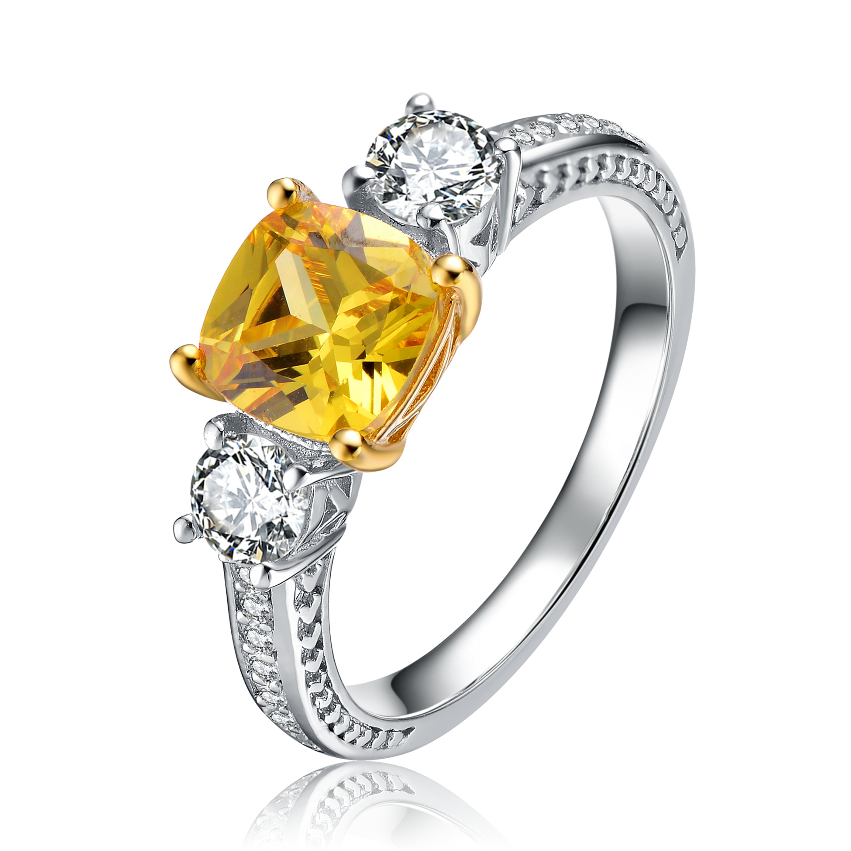 Sterling Silver Yellow Cubic Zirconia Brilliant Cut Ring (Large)