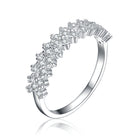 Elegant Sterling Silver White Gold Plated and Cubic Zirconia Band Ring. This ring features a modern zig-zag design made out of three rows. It features clear round cubic zirconia stones set in prong setting. Crafted in Sterling Silver White Gold Plating and it is available in sizes 6, 7 or 8.