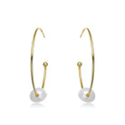 Stylish Sterling Silver with Gold Plating and Freshwater Pearl Hoop Earrings. This pair of earrings is made up of gold plated metal hoops that has Freshwater pearls that run through the metal at the core arc area. Crafted in .925 Sterling Silver, the jewelry is secured with a butterfly clasp. These are perfect on a semi-formal dress.