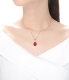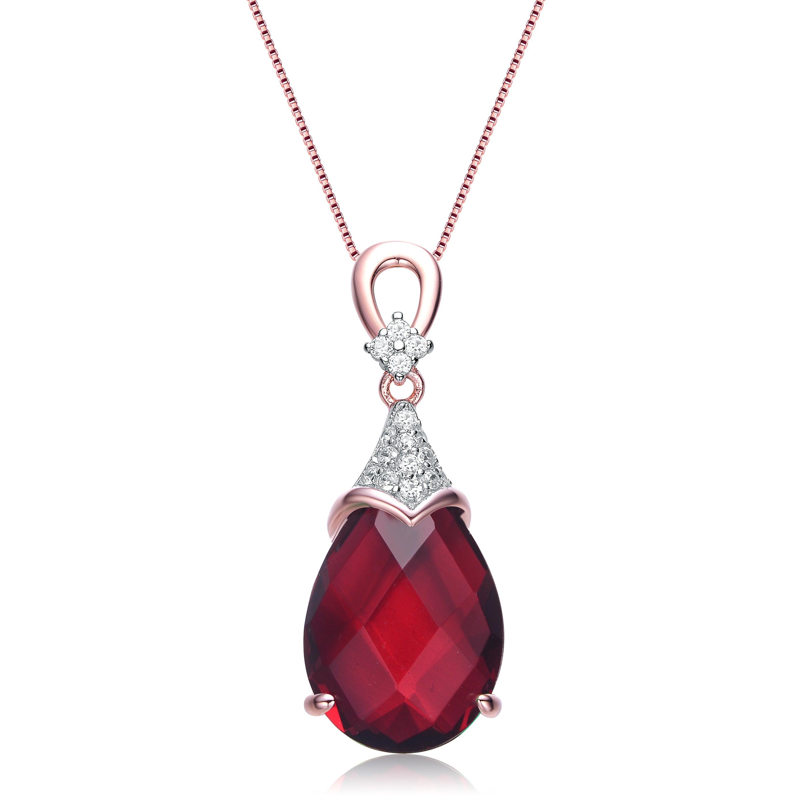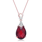 This stylish necklace shines with a blue cubic zirconia. This splendid pendant features asymmetrical peach oval forms from an overlay construction of a rose gold plated .925 Sterling silver which gives you a classy and elegant look. Combining the blue sparkling cubic-zirconia with the peach shape overlay will result to a stunning look and make you stand out in any occasions. Also available in Pink. Emerald and Ruby cubic zirconia.