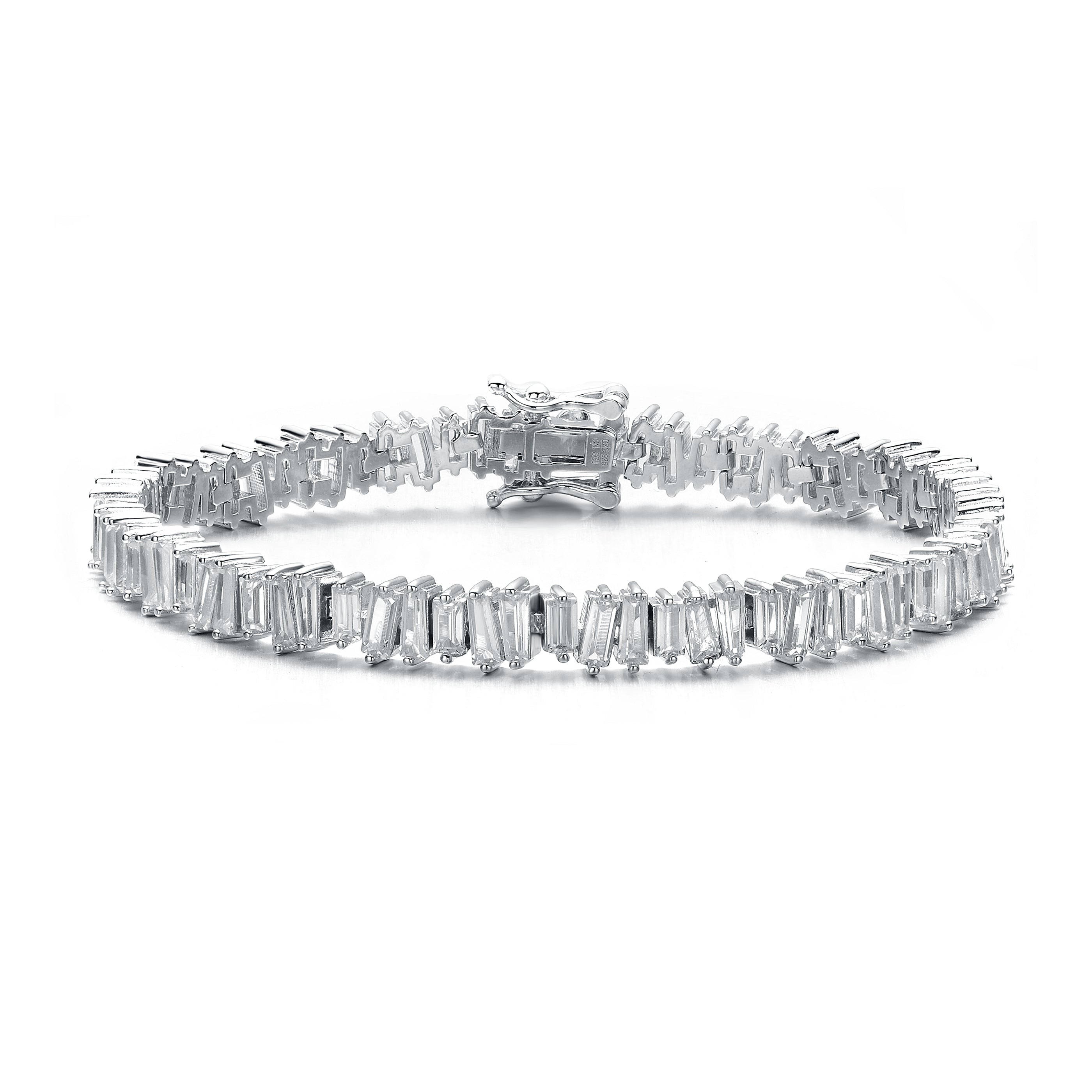 Sterling Silver Rhodium Plated Clear Cubic Zirconia Link Bracelet