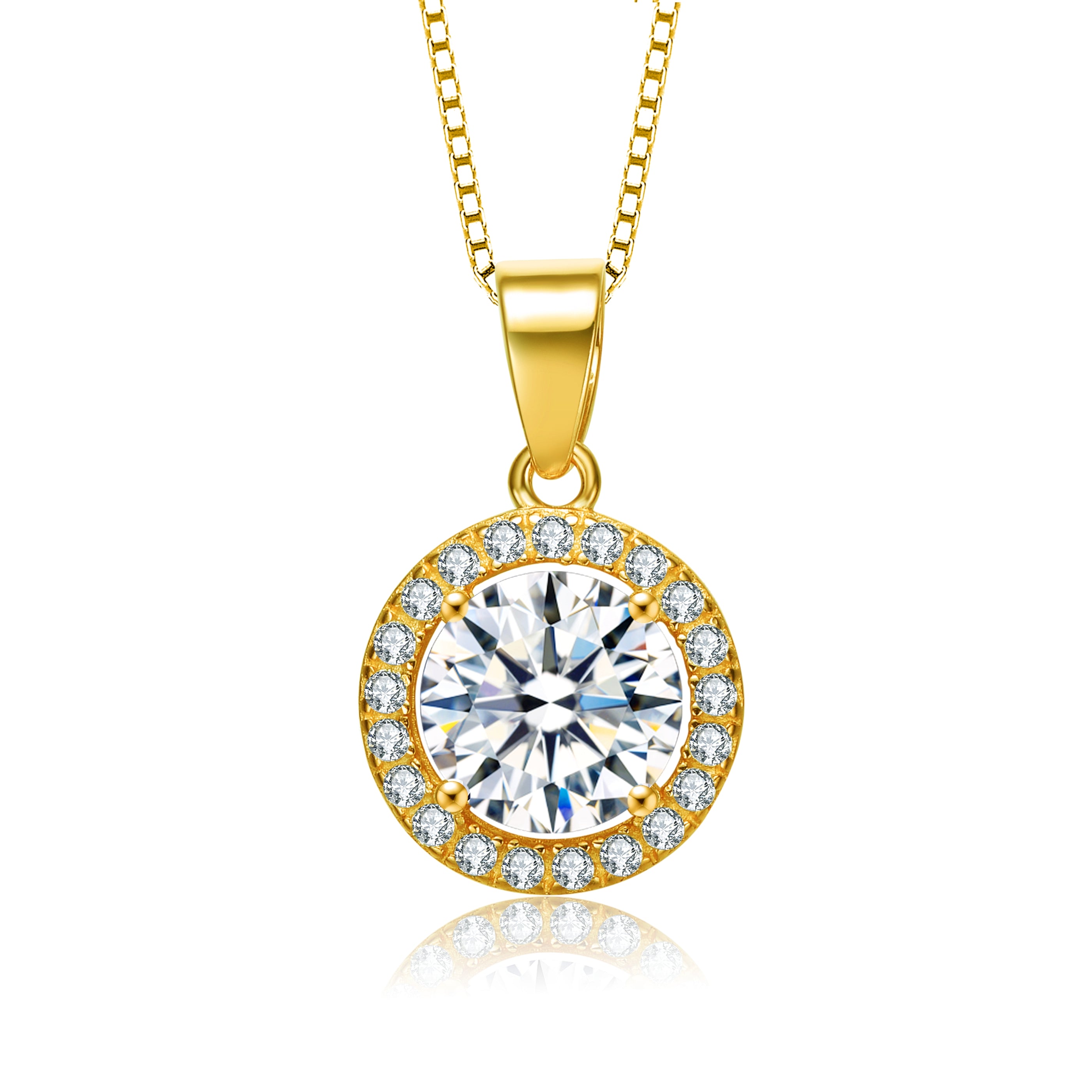 18k Rose Gold Plated Round Cut Cubic Zirconia Pendant Necklace
