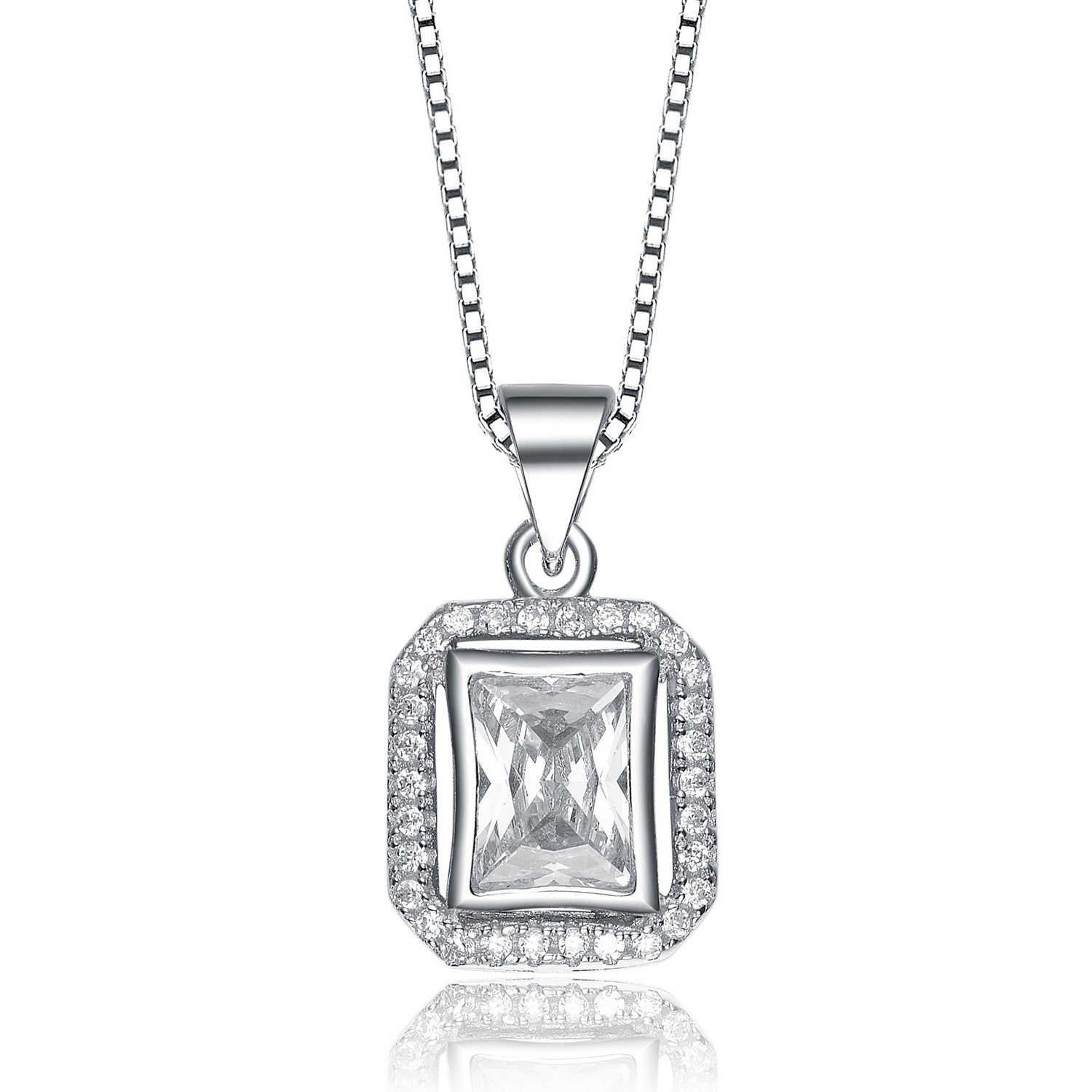 Cz .925 Sterling Silver Rhodium Plated Rectangle Pendant