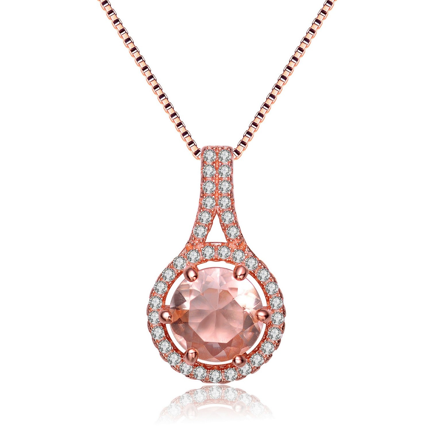 Rose Gold Plated Cubic Zirconia Round Shaped Pendant Necklace